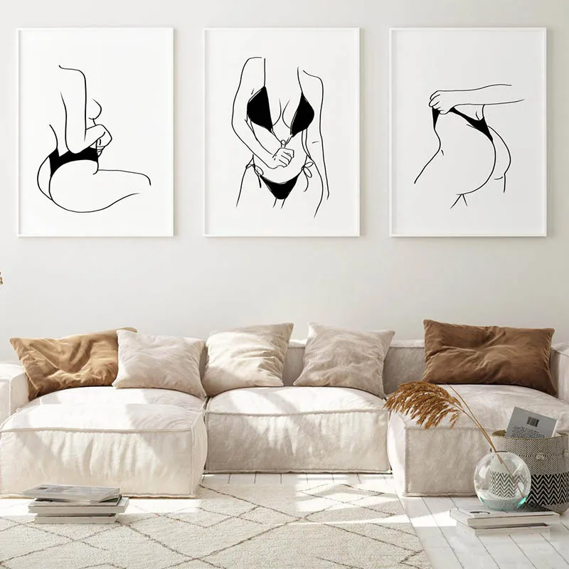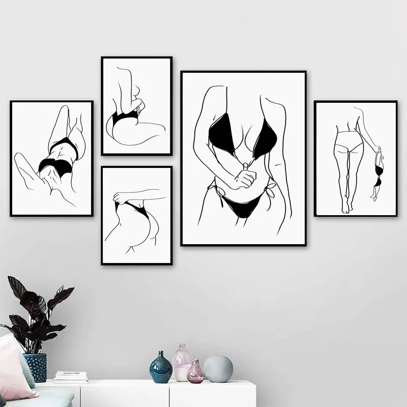 Рисунок на холсте для женщин, абстрактная Женская фотография, минималистичный принт тела в скандинавском стиле для домашнего декора