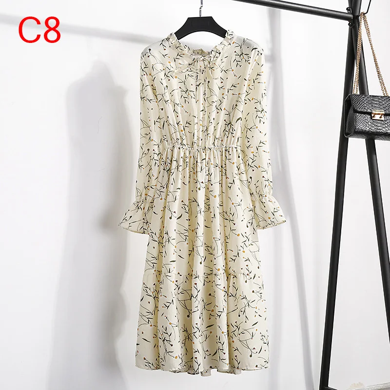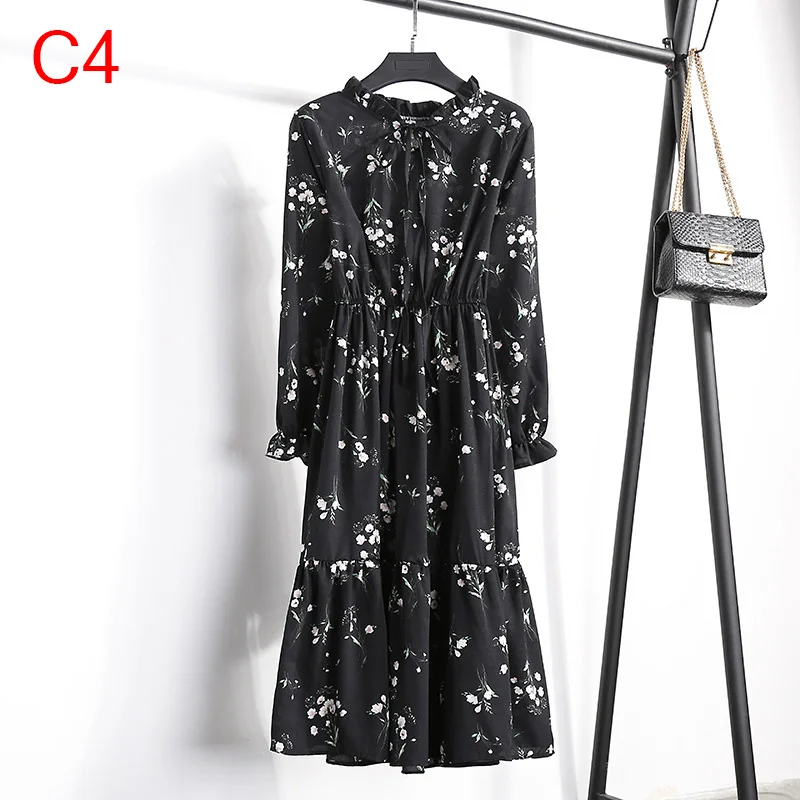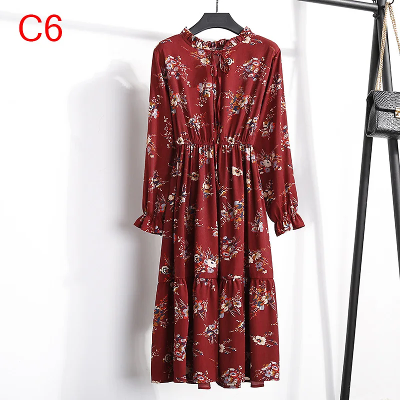 Платье 2021 женская одежда шифоновая рубашка с длинным рукавом платья на пуговицах для клубной вечеринки с красным цветочным рисунком осень-зима