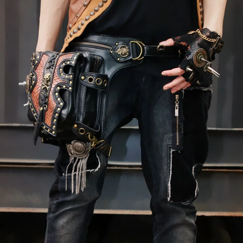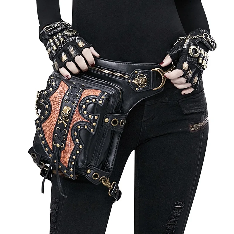 Поясная Сумка для женщин, забавная сумочка на бедро в стиле стимпанк, Байкерская мотоциклетная Сумочка с прямыми штанинами, в готическом стиле, для мужчин, кросс-боди