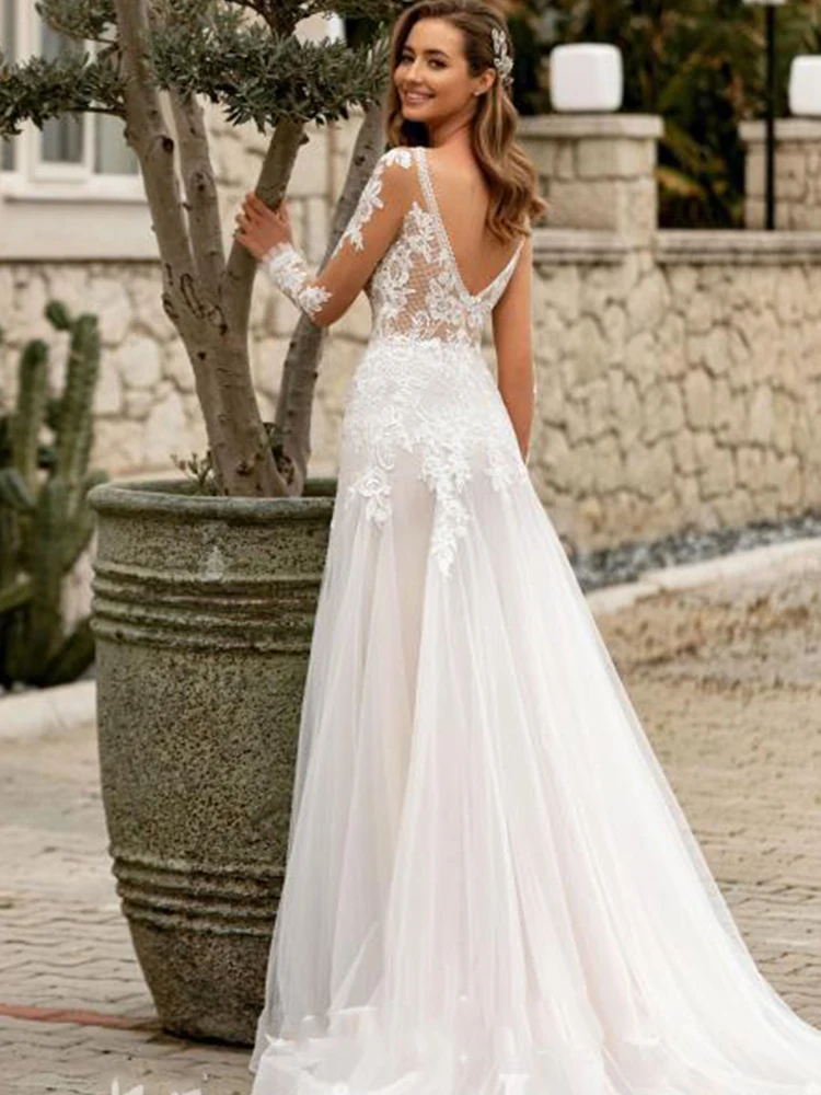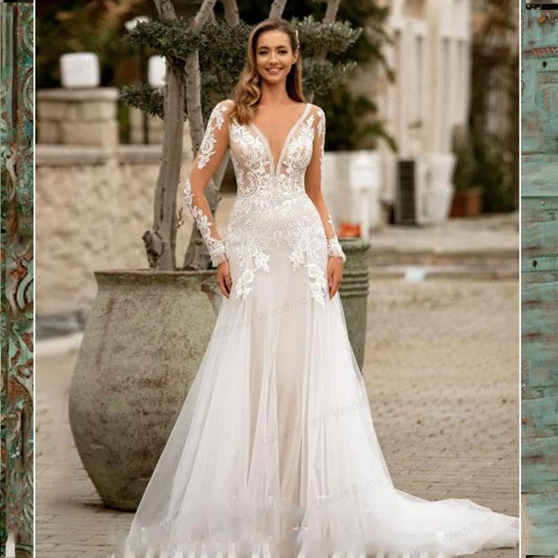 Сексуальное свадебное платье Сексуальное нижнее белье с глубоким v-образным вырезом Русалка с длинными рукавами в стиле принцесс для женщин с коротким рукавом, с открытой спиной, индивидуальный заказ Vestido De Noiva Тюль пол Ленг