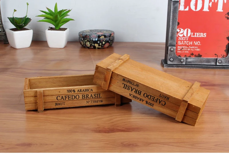 Винтажный деревянный ящик для хранения в ретро стиле для мелочей, канцелярские принадлежности, коробка для ручек, суккулентов, цветов, балконные горшки, украшение для дома