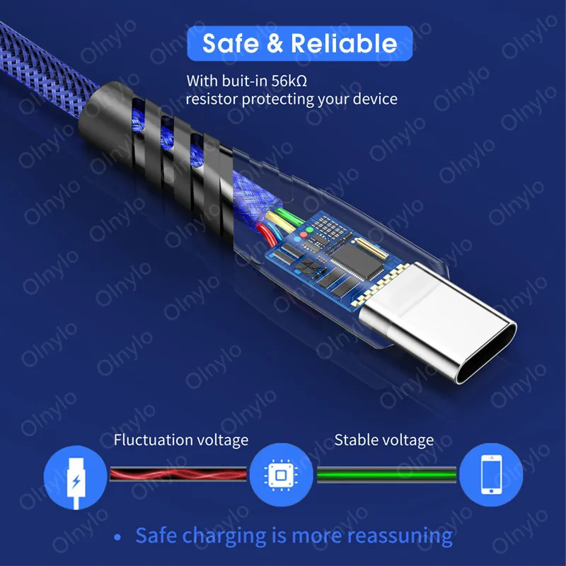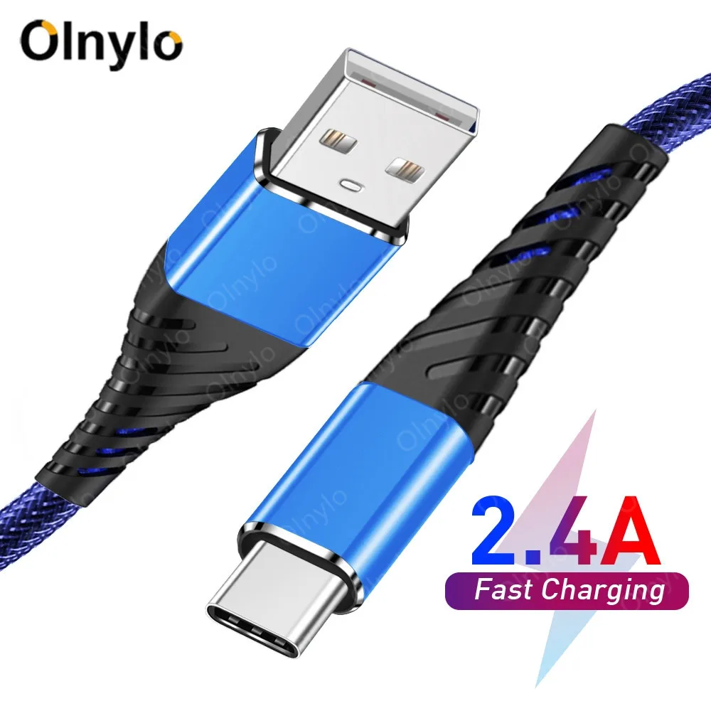 Olnylo 1m 2m Type C USB кабель Быстрая зарядка для Xiaomi Redmi Android мобильный телефон кабель для передачи данных для Huawei P40 Type C зарядное устройство