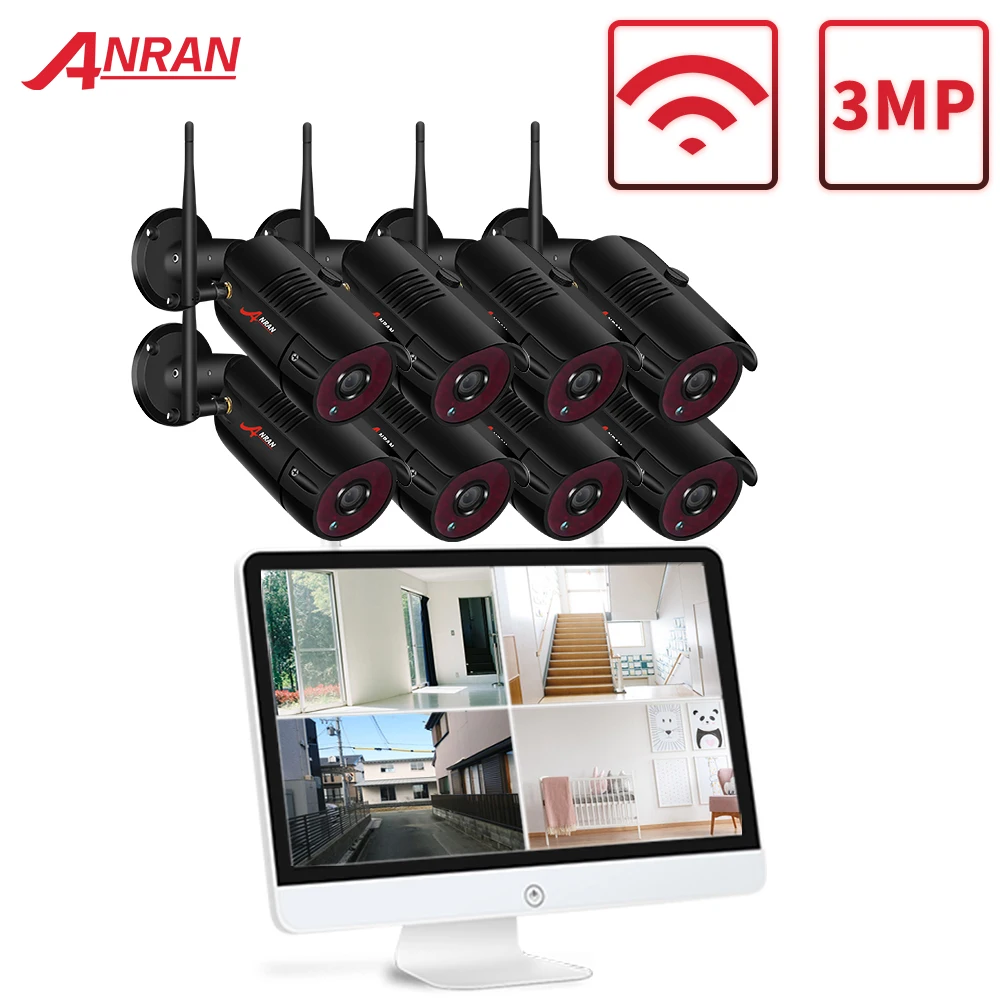 ANRAN 3MP домашняя CCTV видео комплект безопасности Камеры Скрытого видеонаблюдения Системы 1296P открытый Ночное видение Wi-Fi камеры 15 дюймовый монитор NVR Kit