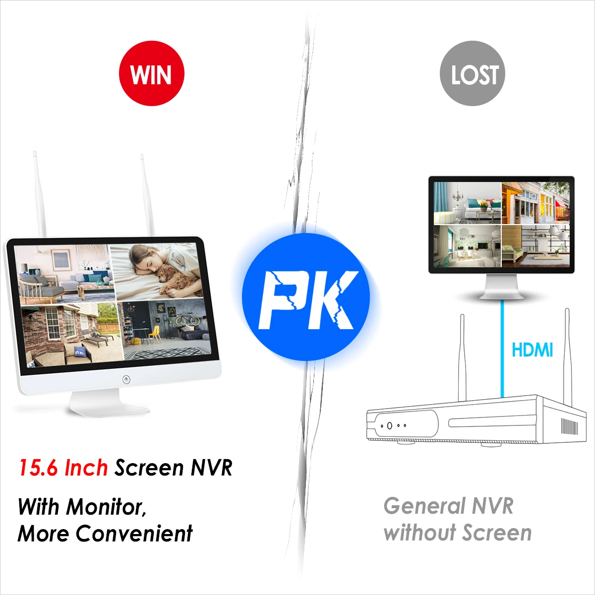 Система охранной камеры будет автоматически подключать камеры безопасности к видеорегистраторУ NVR, Нет необходимости подключать любые видеокабели от камер к видеорегистраторУ NVR.