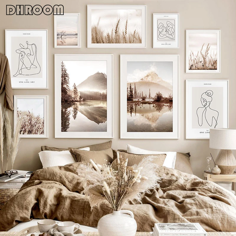 Пейзаж на холсте, Настенная картина в скандинавском стиле, с изобра...