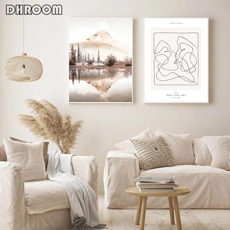 Абстрактная линия в скандинавском стиле, рисунок, холст, печать, на...