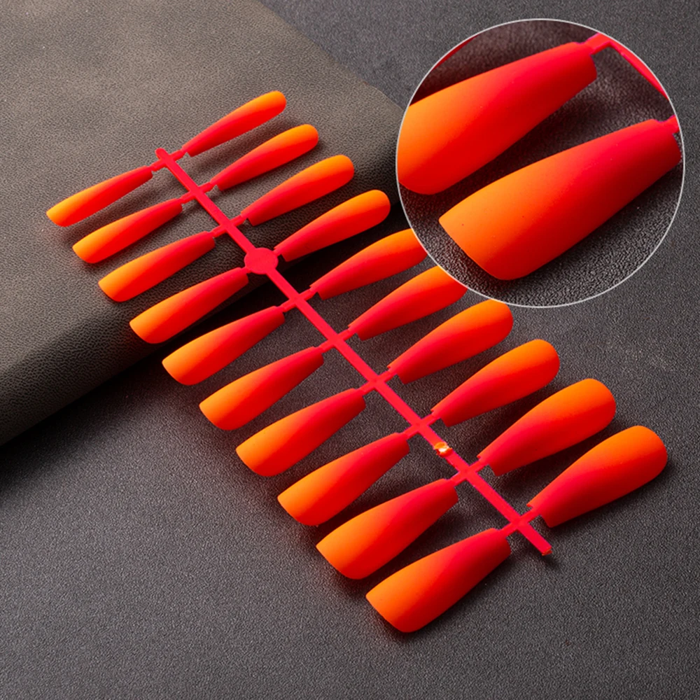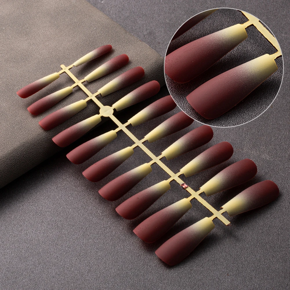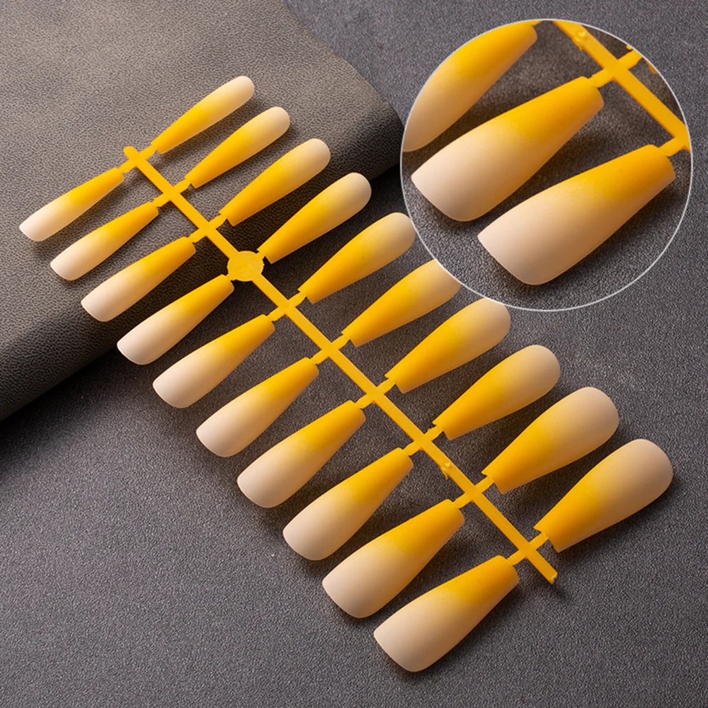 Накладные ногти, 20 шт., матовые, градиентный дизайн, длинный гроб, накладные ногти, полное покрытие, Типсы для ногтей, накладные ногти с желеобразным клеем