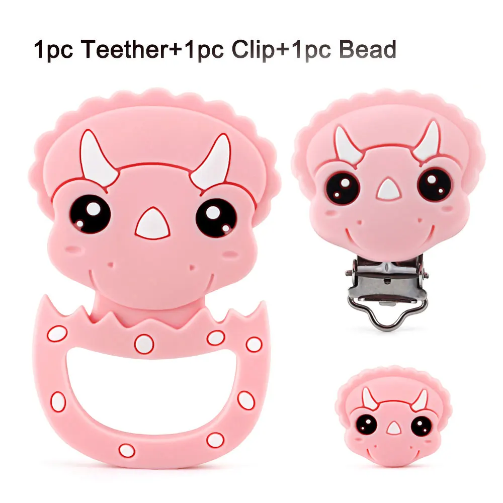 Силиконовый Прорезыватель для зубов для детей, бусы-клипсы с динозавром, не содержит Бисфенол А, держатель цепочки для соски, сделай сам, для прорезывания зубов, грызунов, ожерелье для ухода за полостью рта