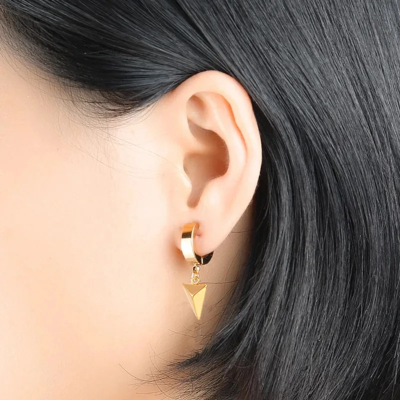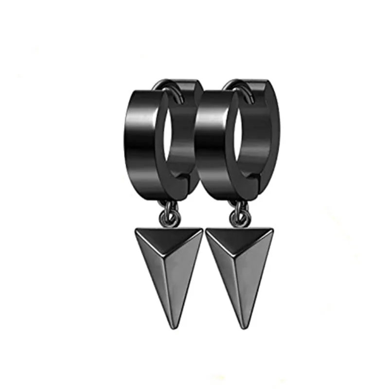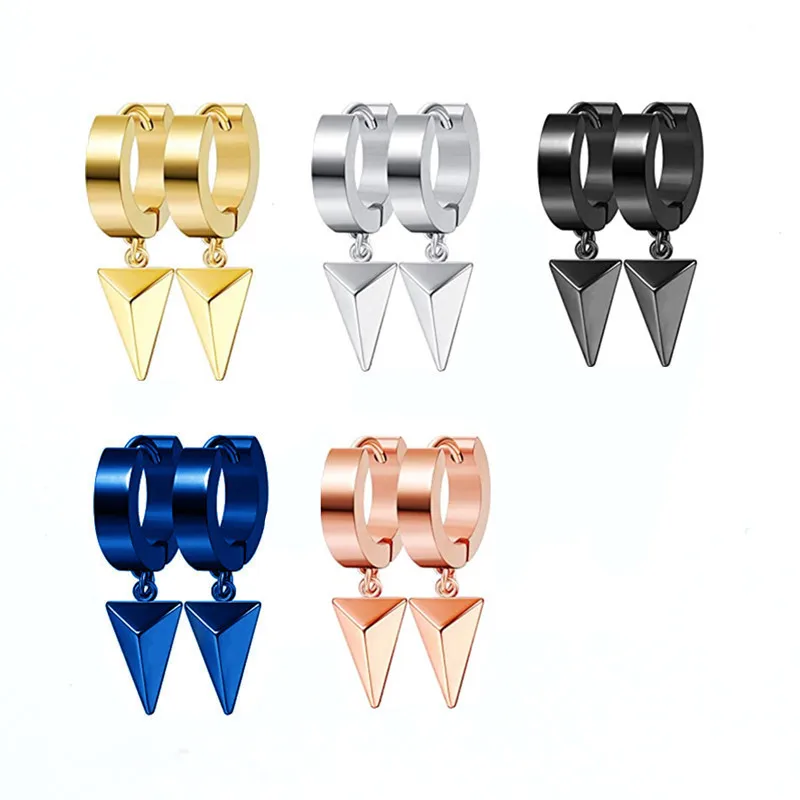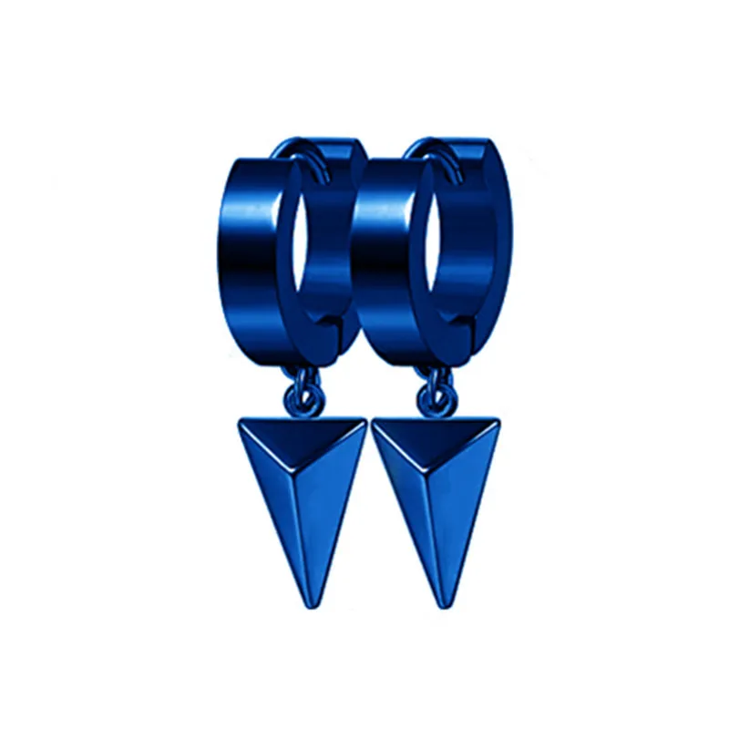 Серьги-кольца из нержавеющей стали унисекс, ювелирные украшения в готическом стиле, треугольные украшения, синиеЗолотые, для мужчин и женщин, 1 пара