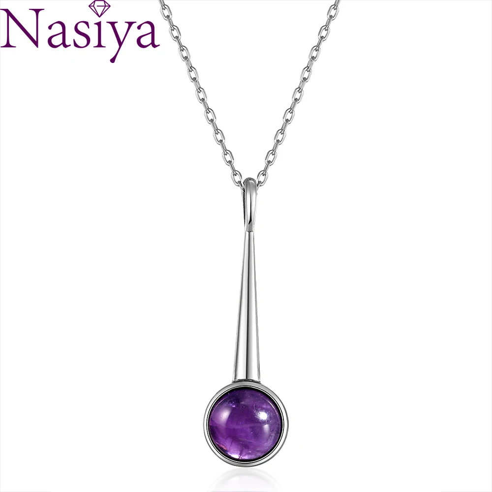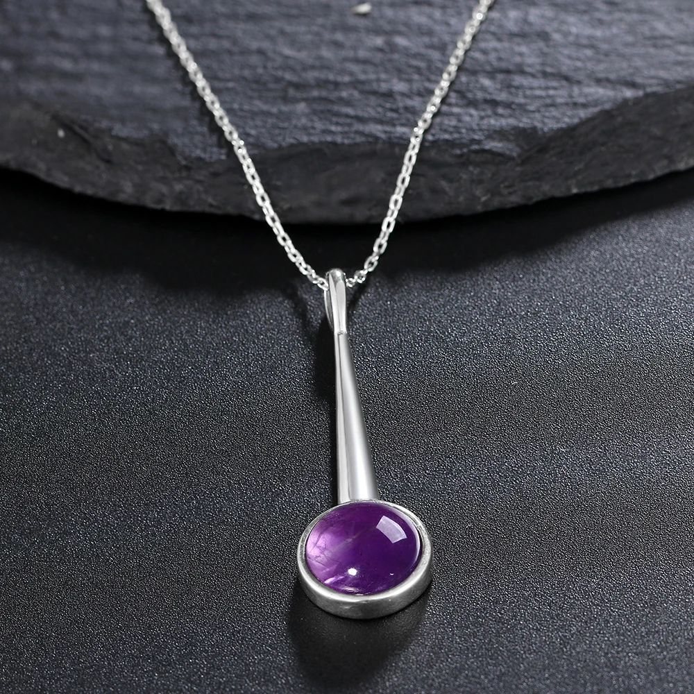 Новый список S925 стерлингового серебра кулон Цепочки и ожерелья большой круглый 10 мм Аметист геометрический Цепочки и ожерелья Обручение вечерние подарок
