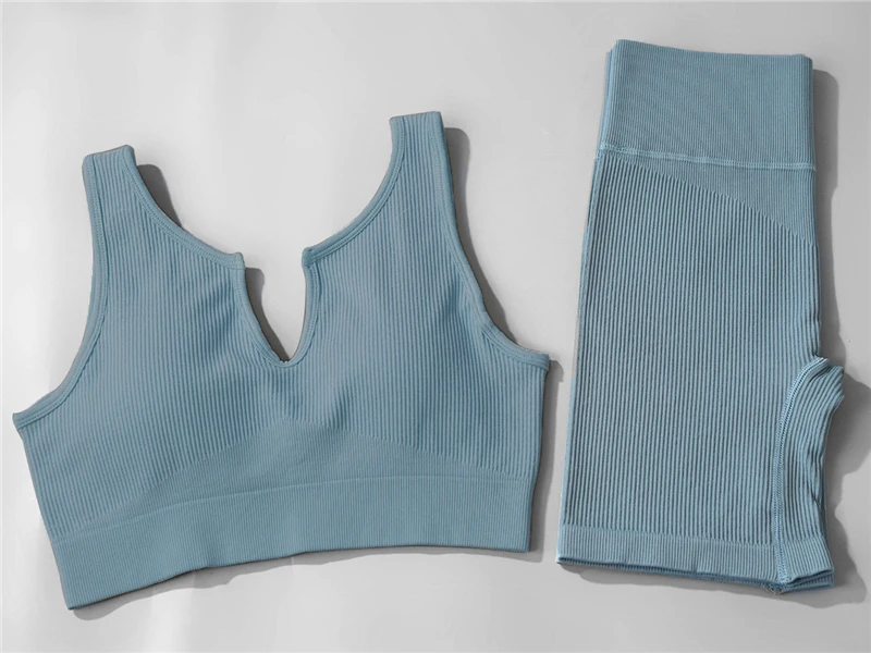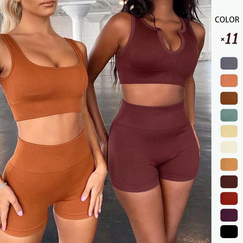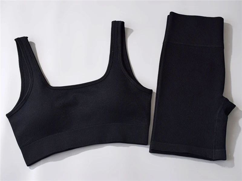 Комплект Спортивный бесшовный для йоги, с U-образным вырезом и шортами с высокой талией, одежда для занятий спортом для спортивного зала
