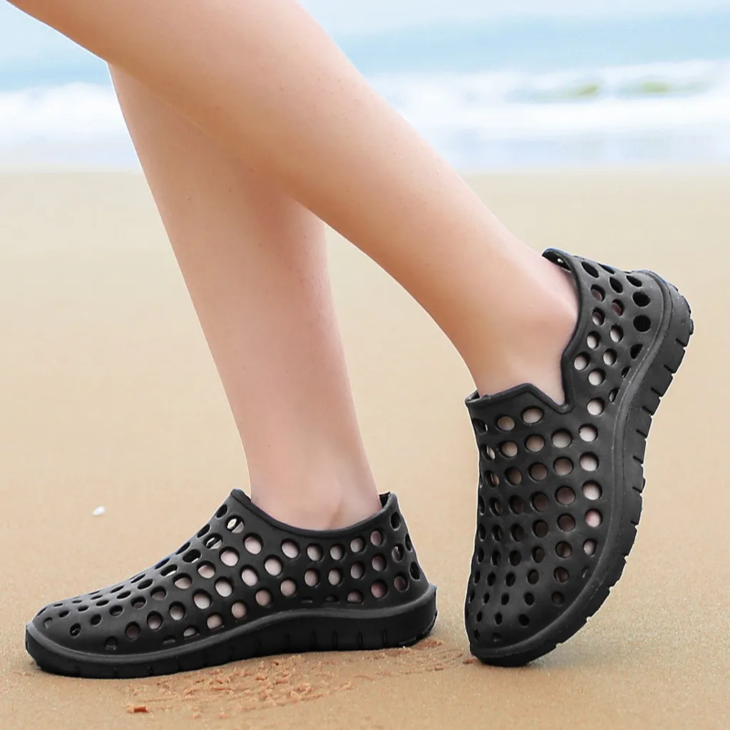 Пляжные шлепанцы унисекс, сандалии с перфорацией, обувь для сада, на плоской подошве, толстая подошва, водонепроницаемые, для пар