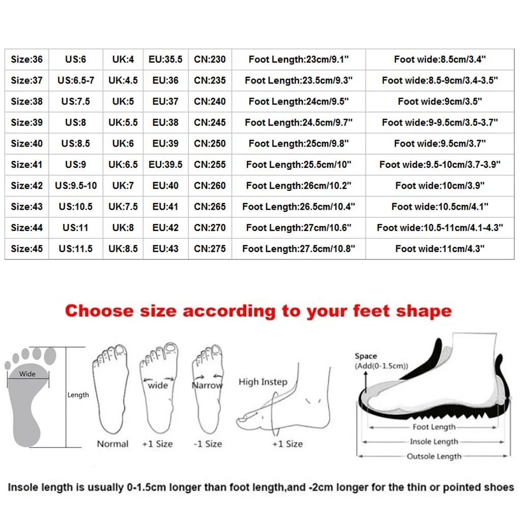Теплое напоминание:Различные стили обуви, пожалуйста, выберите размер в соответствии с типом вашей стопы.