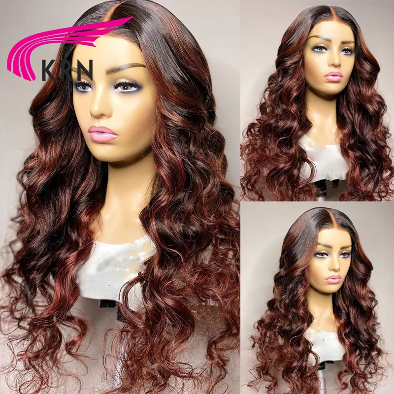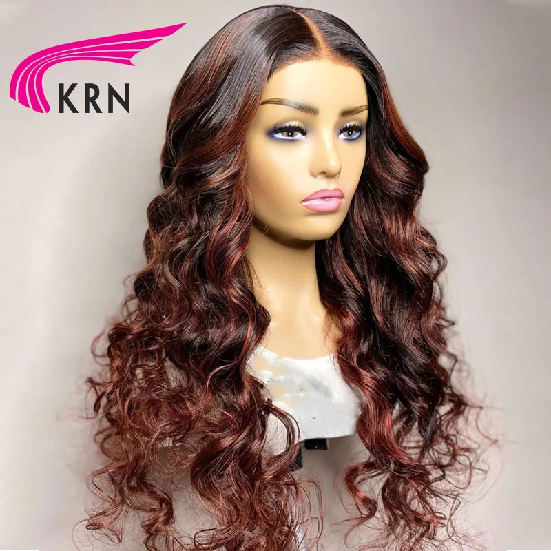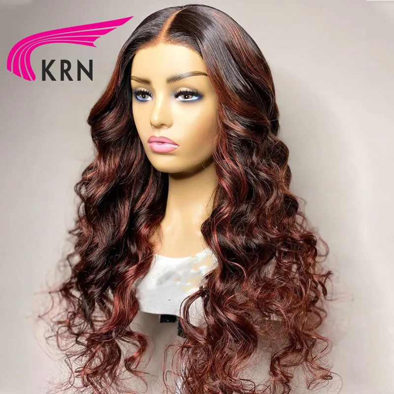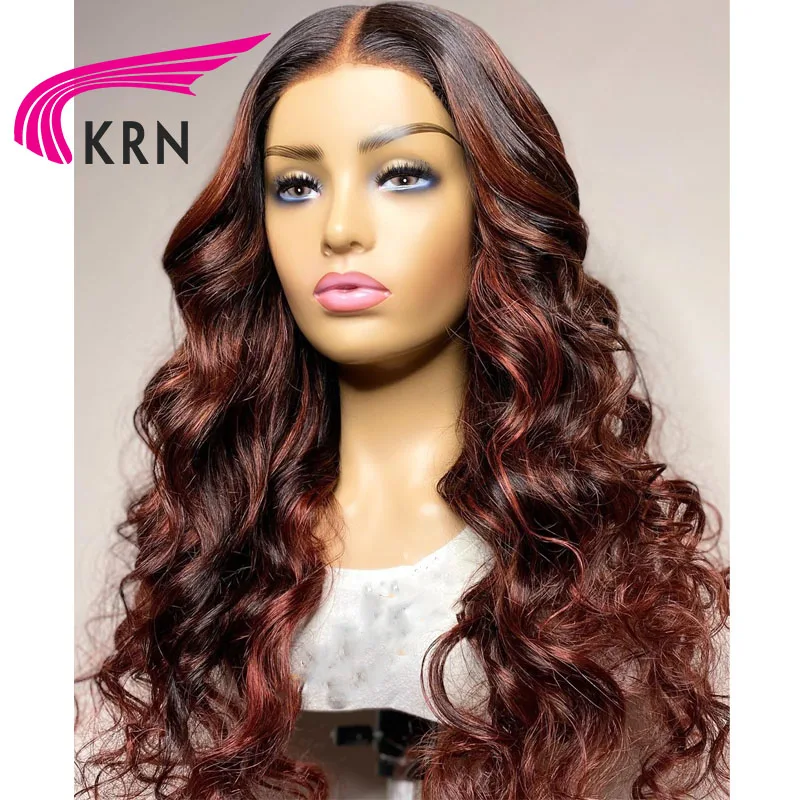 KRN Highlight красные цветные кружевные передние человеческие волосы парики для женщин человеческие волосы парики Highlight 13X4 13X6x2 Омбре волнистые парики фронта шнурка