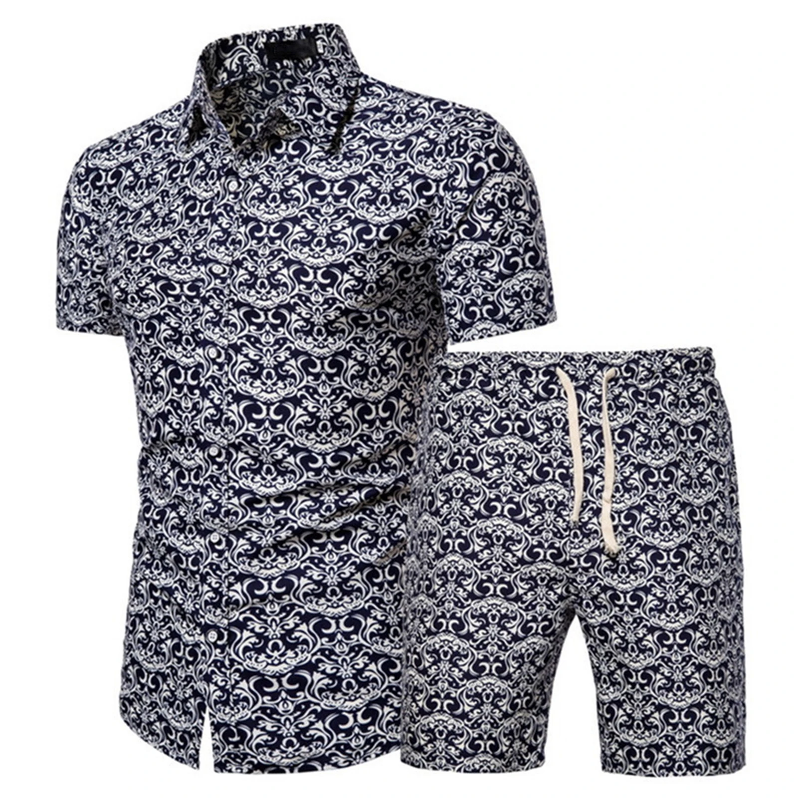 Комплект hirigin мужской летний, гавайская рубашка и шорты с цветочным принтом, пляжная одежда, одежда для работы, комплект из двух предметов
