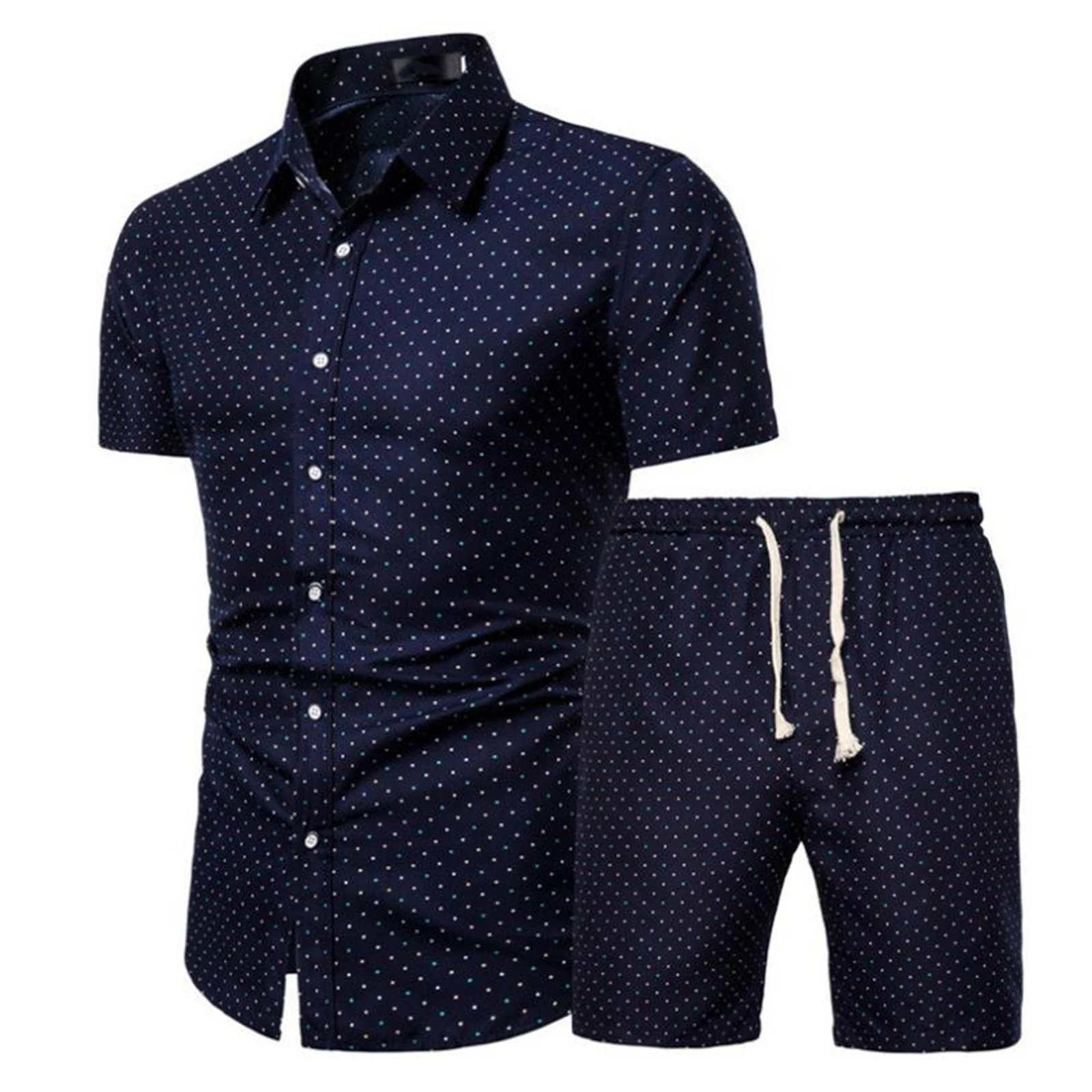 Новинка летняя мужская одежда рубашки с коротким рукавом шорты прин...