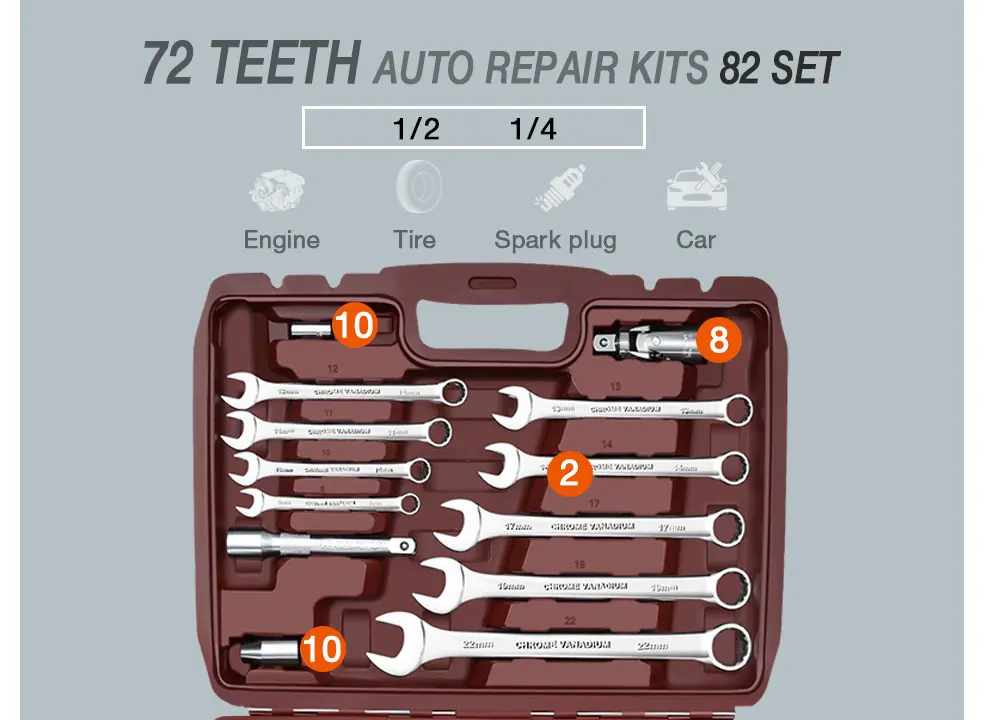 Набор ручных инструментов YINLONGDAO для ремонта автомобилей, набор многофункциональных инструментов с храповым механизмом набор механических инструментов с покрытием набор инструментов гаечный ключ