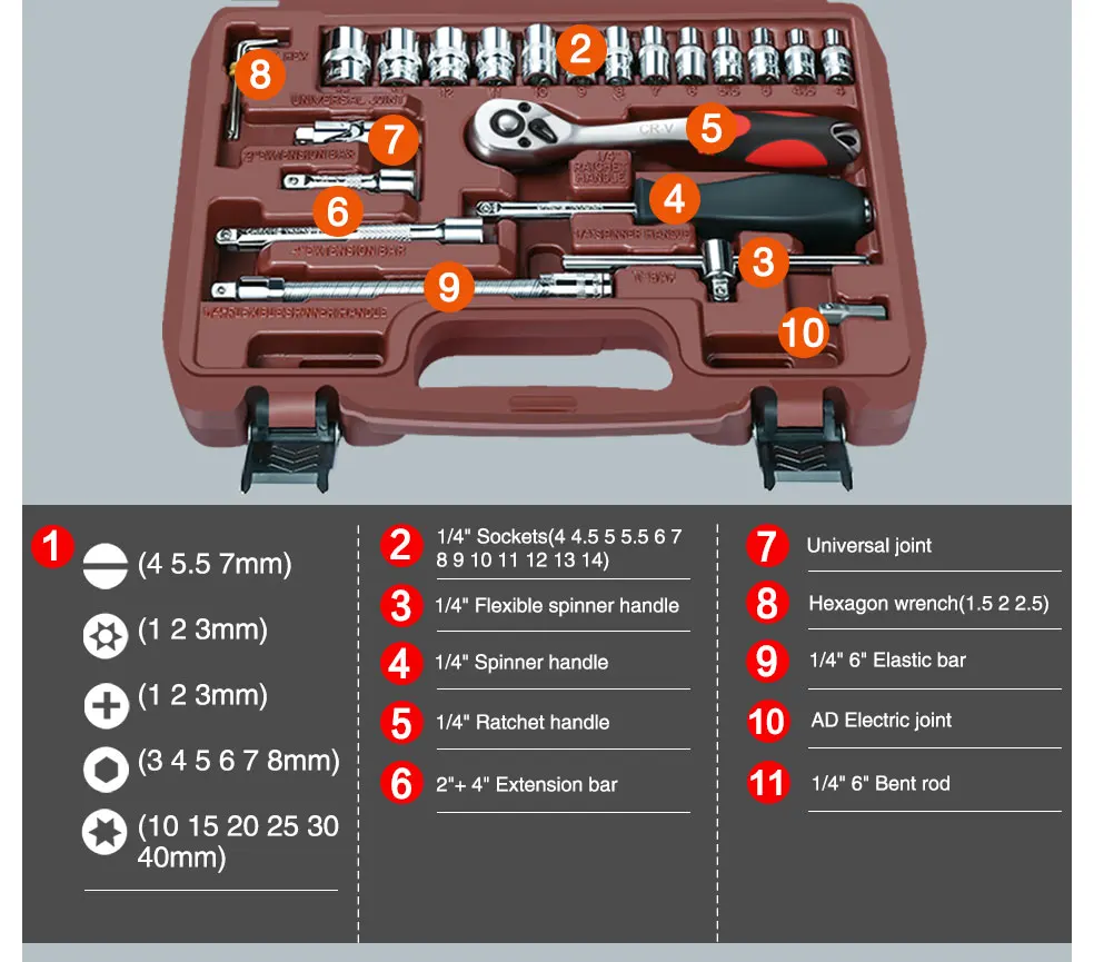 Особенности: Материал: хром-ванадиевая сталь Зубной Трещоточный ключ, экономия усилий Твердость до HRC48 S2 шестигранный ключ из легированной стали