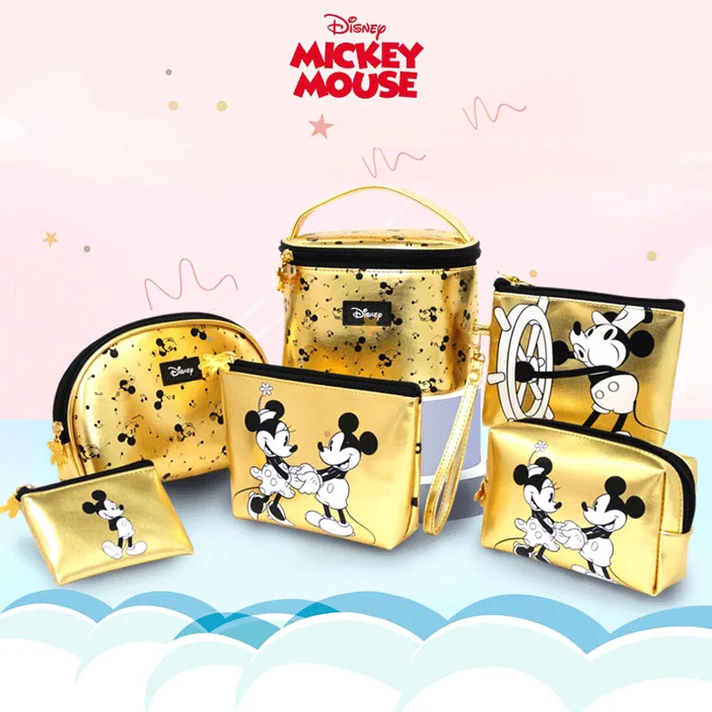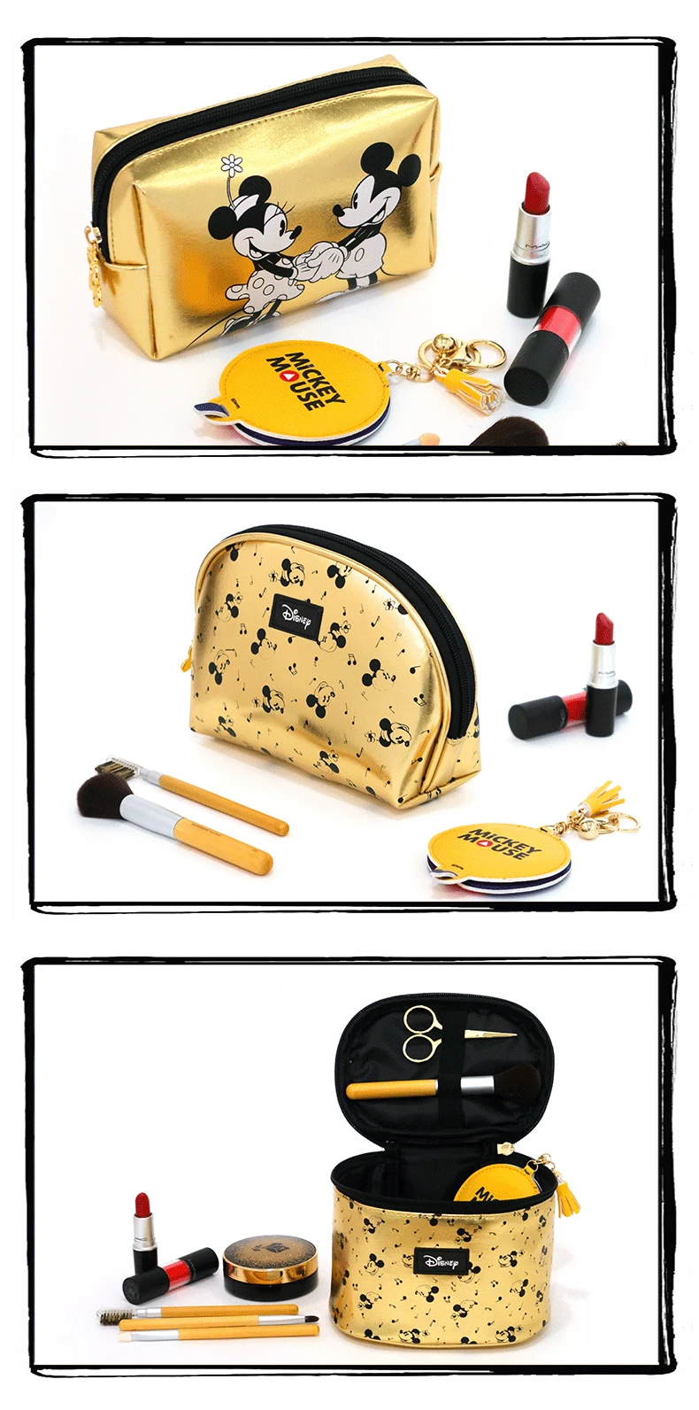 Дорожная многофункциональная сумка для макияжа с диснеевским Микки и Минни, Женская Портативная сумка большой емкости для хранения кистей для макияжа и губной помады