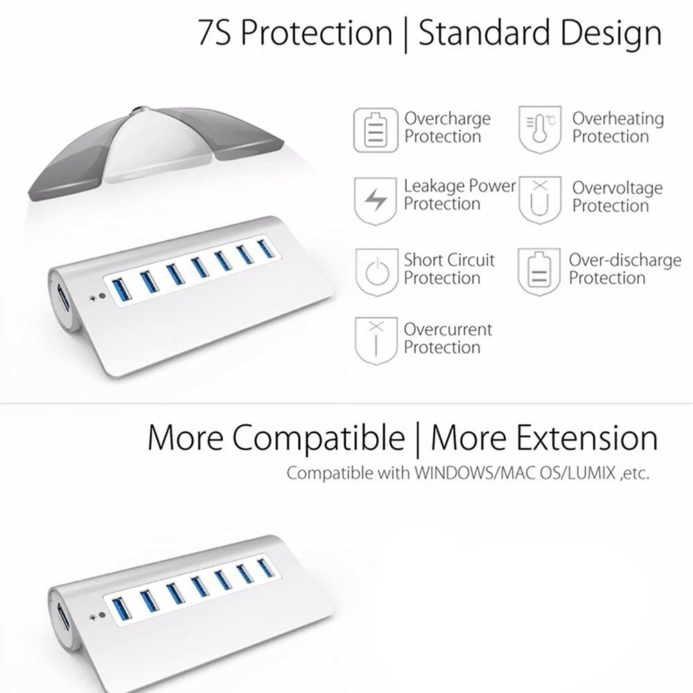 47 портов алюминиевый Мульти USB 3,0 концентратор USB 2,0 высокоскоростной USB-разветвитель кардридер 5 Гбитс для ПК ноутбука Mac iMac MacBook Pro