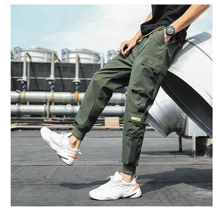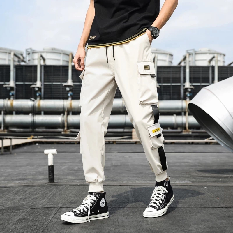 Брюки-султанки kb2021мужские с боковыми карманами, повседневные джоггеры с лентами в стиле хип-хоп, модные повседневные уличные штаны