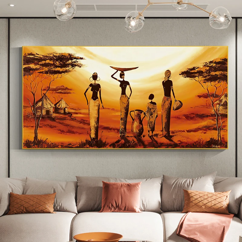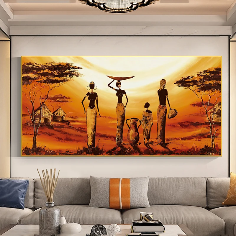 Абстрактная картина закат пейзаж на холсте Ретро африканские женщины плакаты и принты Настенная картина для гостиной домашний декор