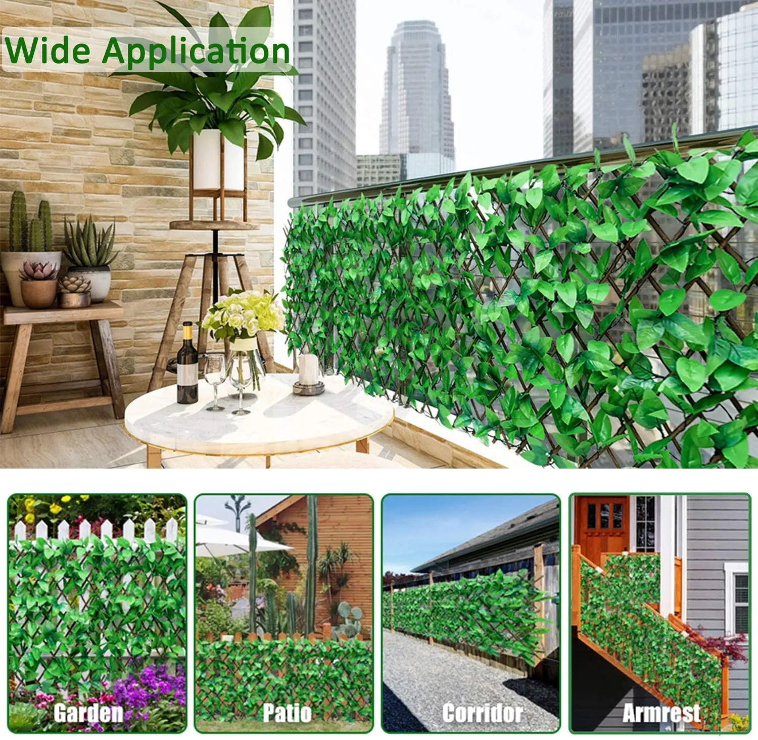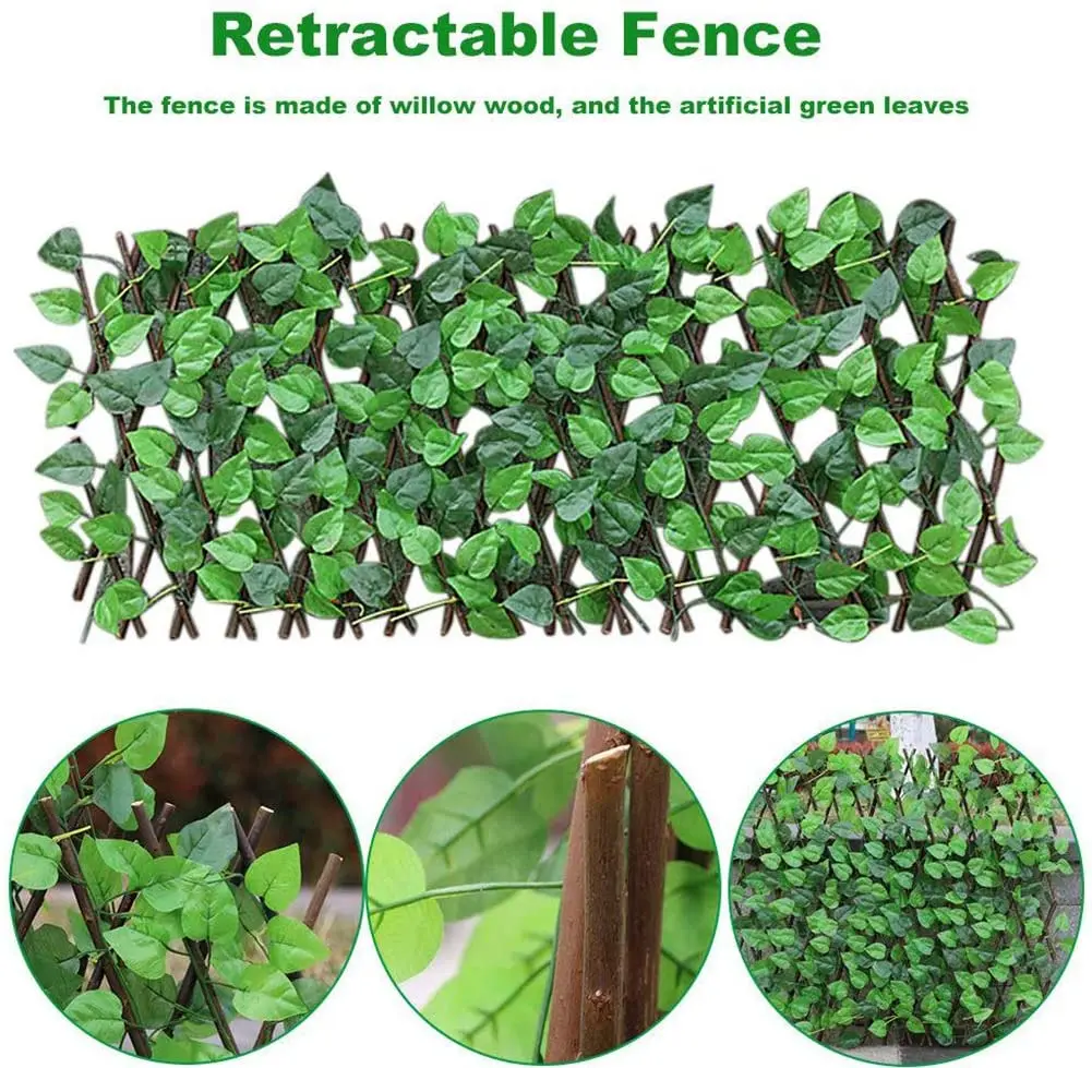 -Регулируемый выдвижной забор изготовлен из дерева, а искусственные зеленые листья яркие и не выцветают-Украшение для садового забора, уличное дерево выдвигается и легко устанавливается и делает ваш сад уникальным. Вы можете свободно растягивать деревянный забор-Расширяющийся деревянный забор имеет широкий спектр применения. Вы можете использовать выдвижной забор для украшения стен и создания уличных экранов или изгородей-Искусственный садовый шпалер может блокировать большинство лучей, поддерживать конфиденциальность и пропускать воздух. Ландшафтный садовый забор-идеальный выбор для использования в помещении или на открытом воздухе-Искусственное садовое ограда из растений может свободно растягиваться, высота меняется с шириной, и размер изменяетсяПосылка в том числе1 * забор