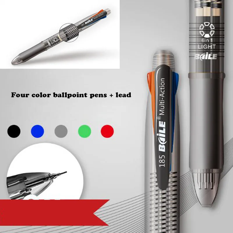 Многофункциональная шариковая ручка 5 в 1, четыре цвета, шариковая ручка 0,7 мм + 1 автоматический карандаш 0,5 мм, офисное обучение письму