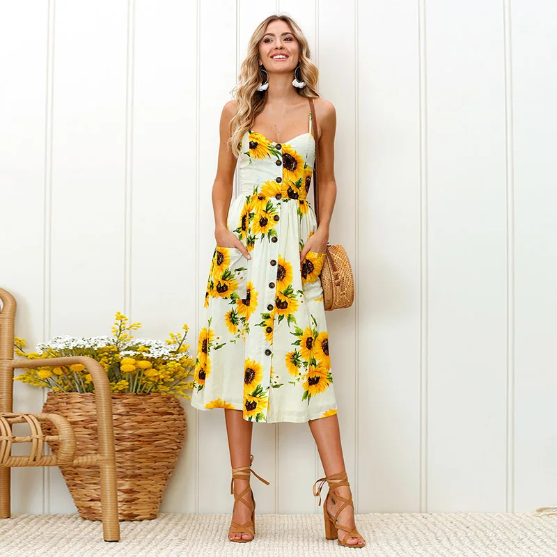 Женское пляжное платье с принтом в виде подсолнухов, большого разме...