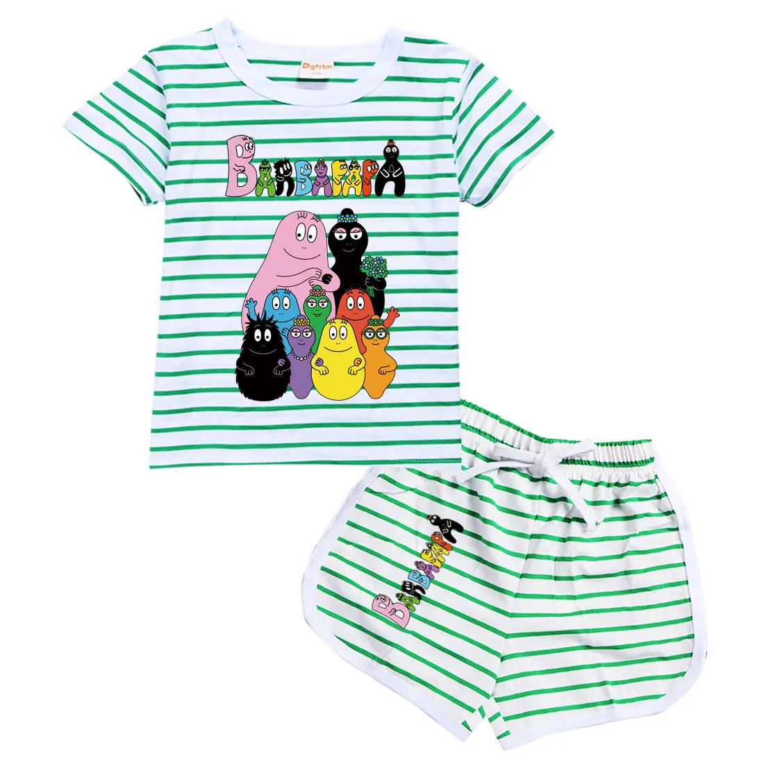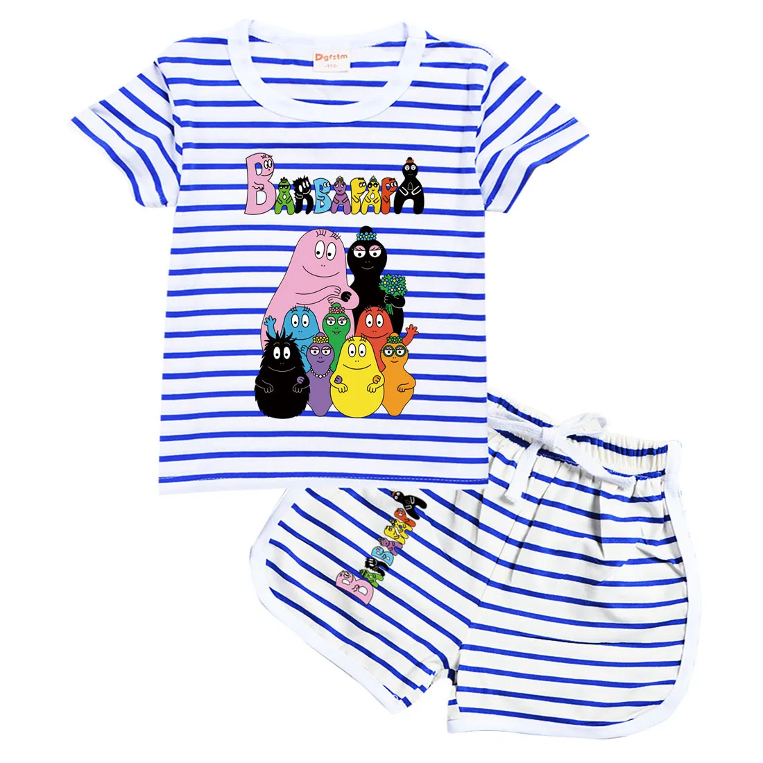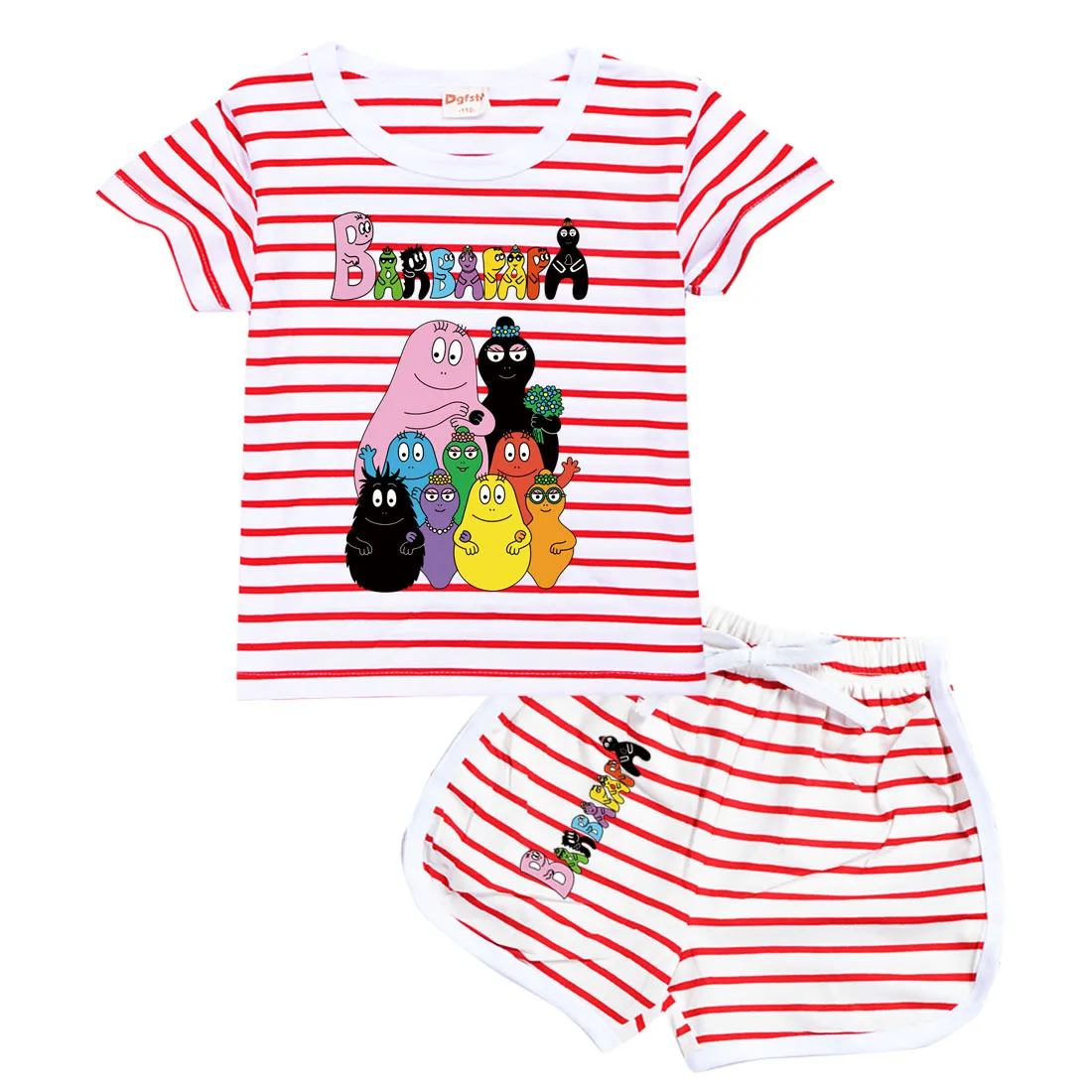 Лидер продаж, летняя полосатая футболка и шорты barbapпа, комплект для детей, хлопковая одежда для сна с милым принтом для девочек, домашняя одежда для сна для малышей