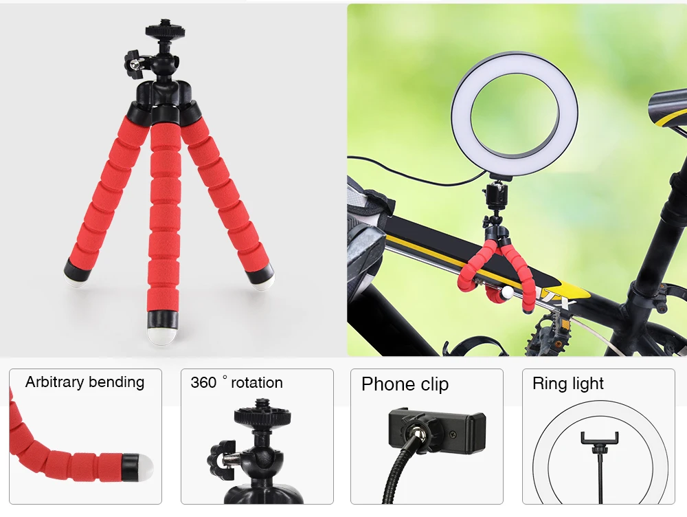 Конструкция «2 в 1 сочетает в себе держатель телефона и selfie ring светильник, идеальный дополнительный заполняющий светильник для макияжа, прямые трансляции, портретной съемки, онлайн-обучение, selfie фото, съемок, видео запись, ночное видение темный пейзаж vlogging и т. Д. Его также можно использовать как настольную лампу для чтения, даже как Ночной светильник.