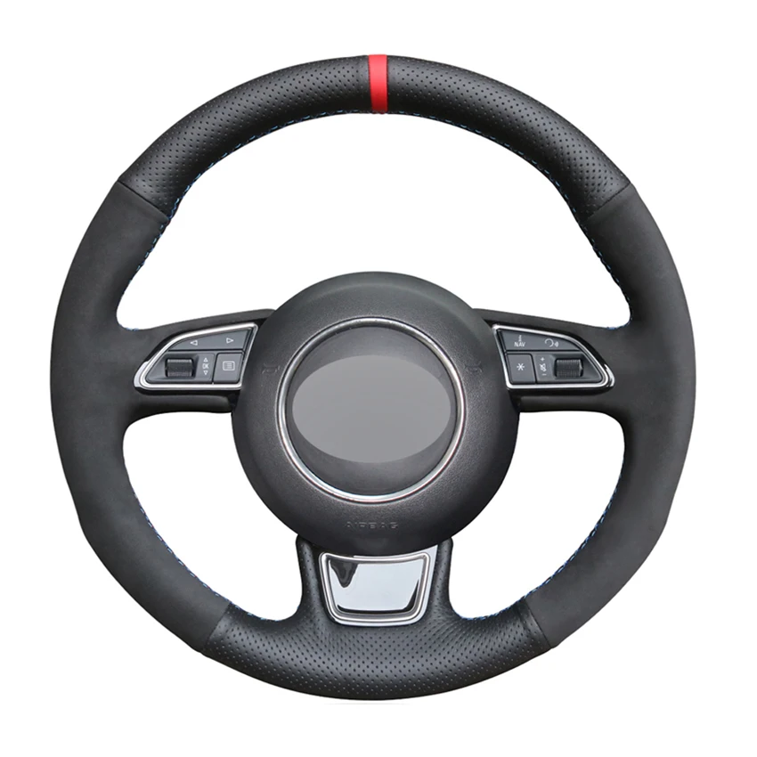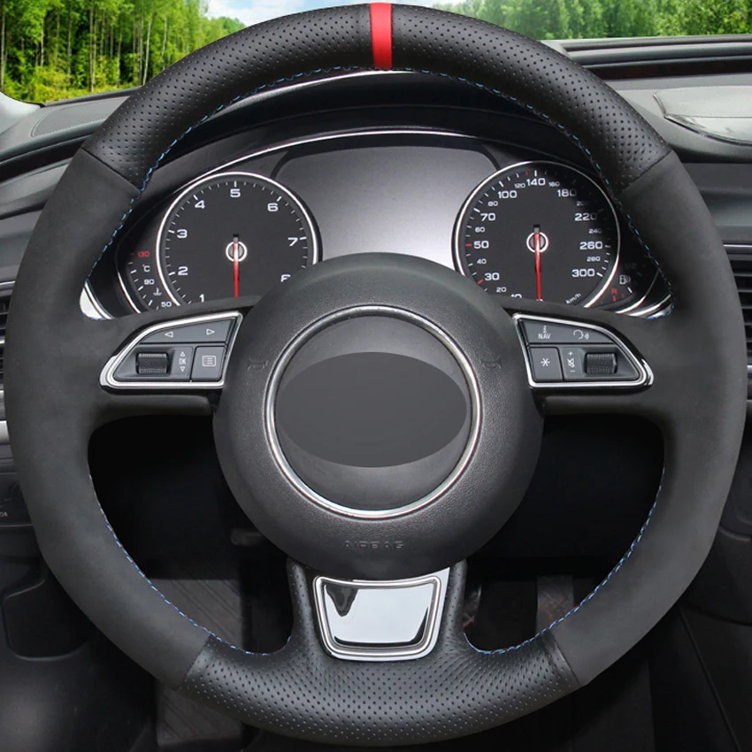 Черная замша красный маркер чехол рулевого колеса автомобиля для Au...
