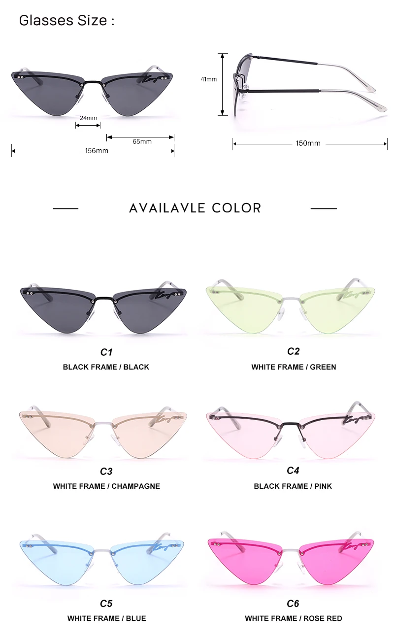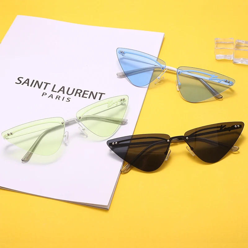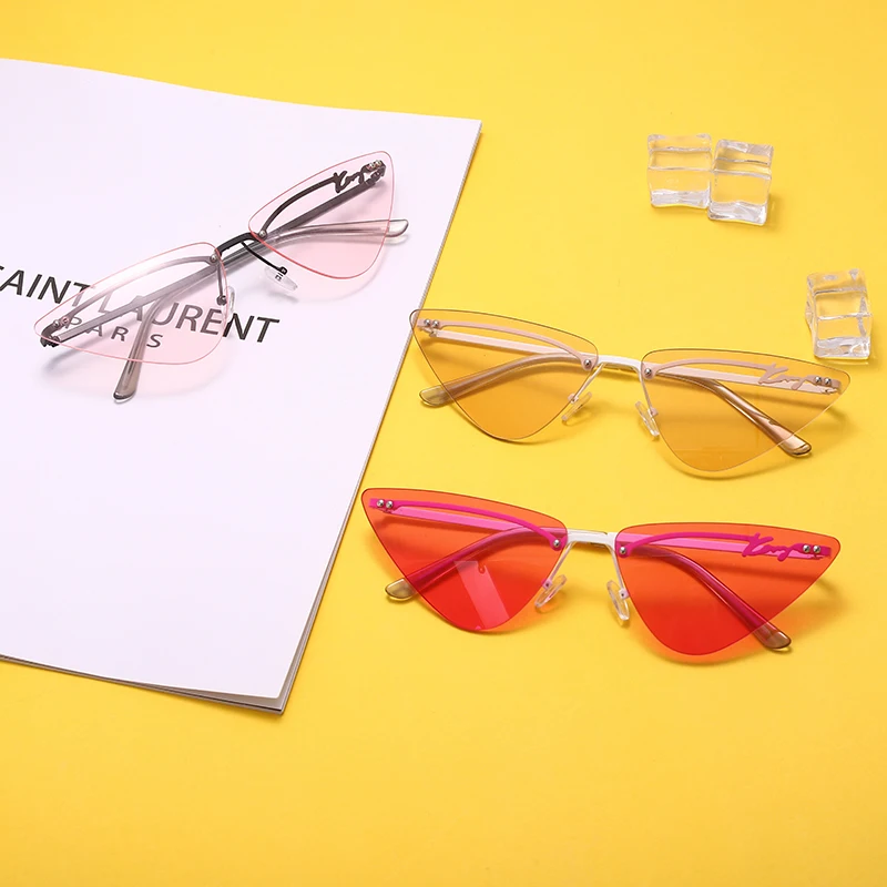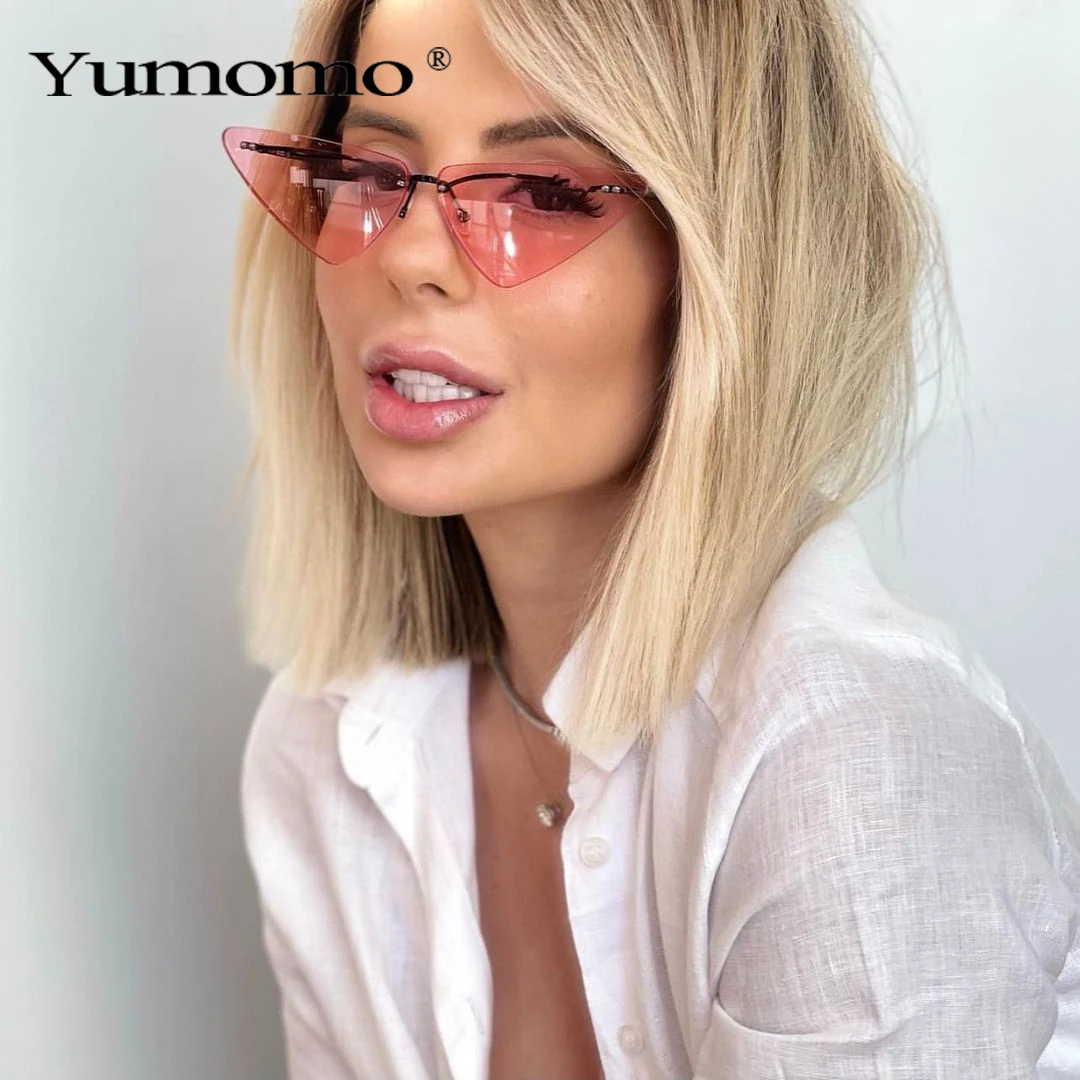 Солнцезащитные очки кошачий глаз женские, небольшие винтажные классические брендовые дизайнерские солнечные очки без оправы в ретро стиле, с защитой от ультрафиолета