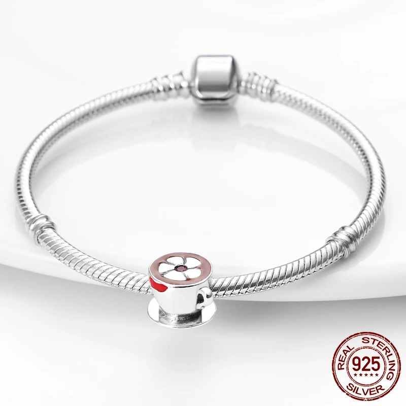 Бусины чашка в виде кофе, серебряные шармы-бусины в виде сердца в виде кофе, подходят для браслета Пандоры, браслета сделай сам, серебряный цвет, подарок для изготовления ювелирных изделий