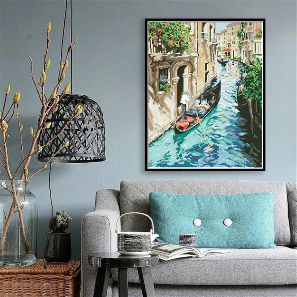 Водные виды города штампованные наборы крестиков печатная ткань вышивка, рукоделие, поделки 11CT 14CT DIY домашний декор картины