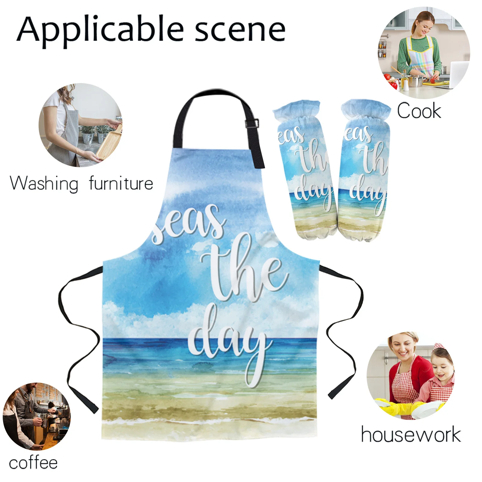 Берег акварель фартук Кухня бытовой уборки парикмахерский фартук Аксессуары для выпечки женские фартуки