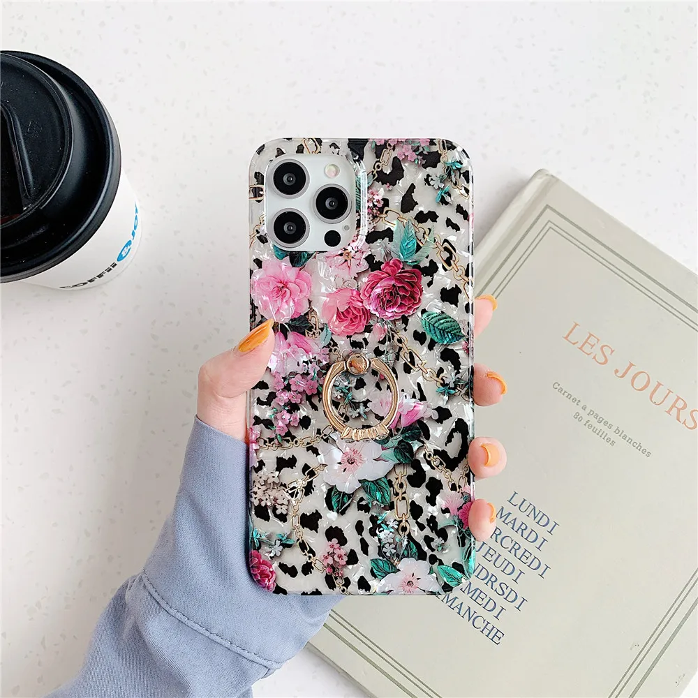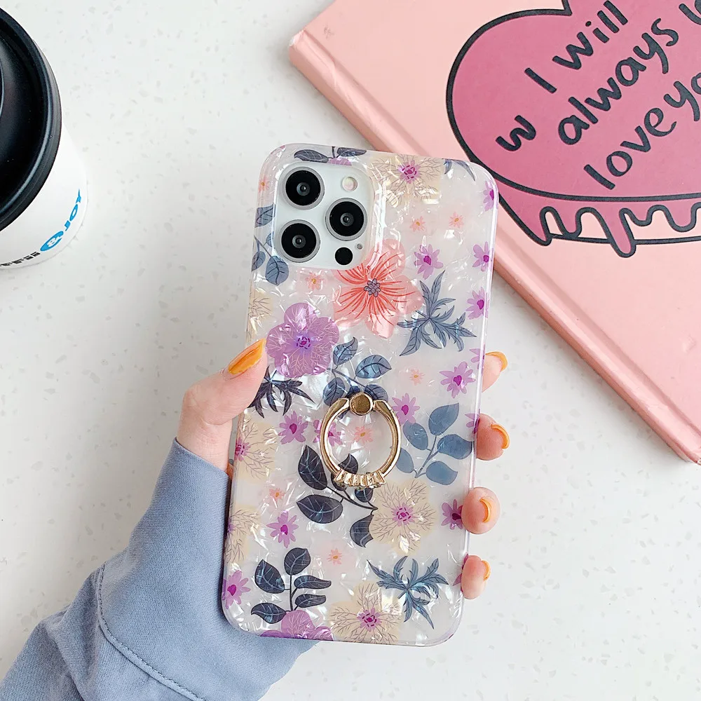 Мягкие чехлы с кольцом-держателем для iPhone 12 Pro Max 7 8 Plus XR XS Max 11 Pro Max 12 Mini, чехол-подставка для телефона с рисунком цветов