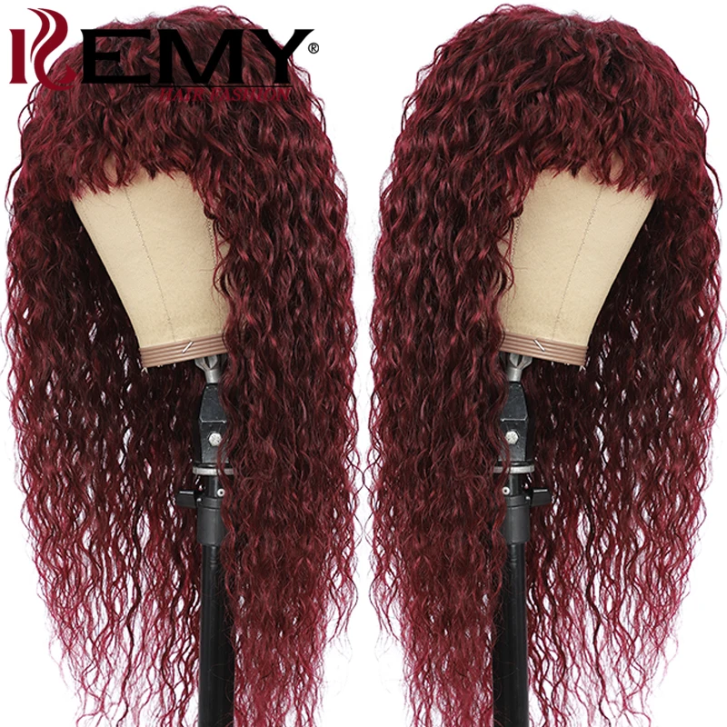 Бразильские волнистые челки, парик 99J, парики с эффектом омбре для черных женщин, полноценный парик из человеческих волос Remy с челкой 150%