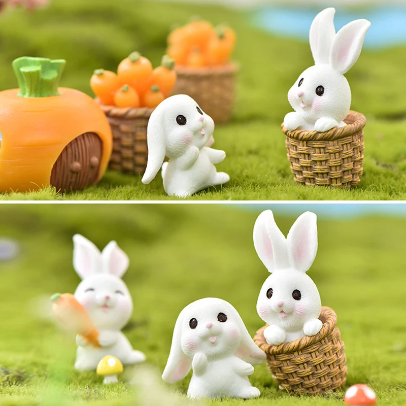 Мультяшный кролик, мини-украшения, Пасхальная фигурка, кролик, миниатюрный пейзаж, модель животного, бонсай, украшение для сада и дома