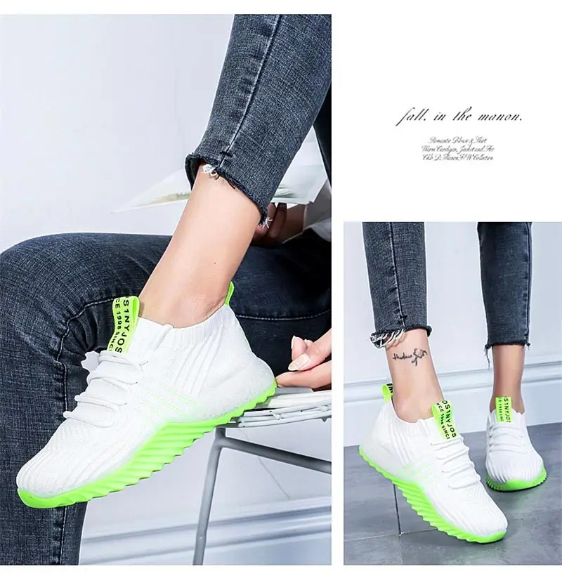 Женские дышащие кроссовки без шнуровки, носки для женщин светильник...