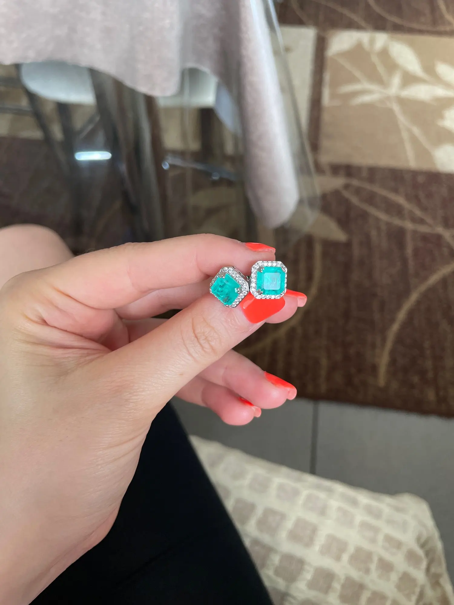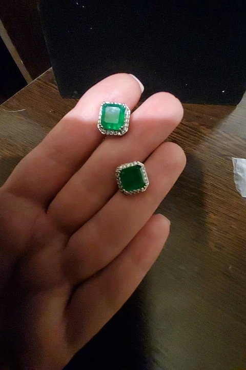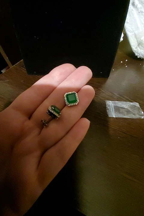 На фото у продавца камни мутные. А пришли сережки с прозрачными голубыми камнями. Т.е. все как на фото, только вот камень прозрачный. Уже не тот эффект. Но всё-таки красивые серьги. И цвет очень красивый.