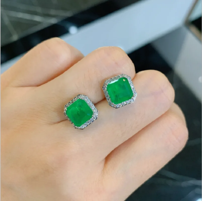 Новинка от бренда QTT, изумрудные квадратные турмалиновые серьги из драгоценного камня Paraiba, блестящие серьги из серебра, серьги для помолвки Вечерние