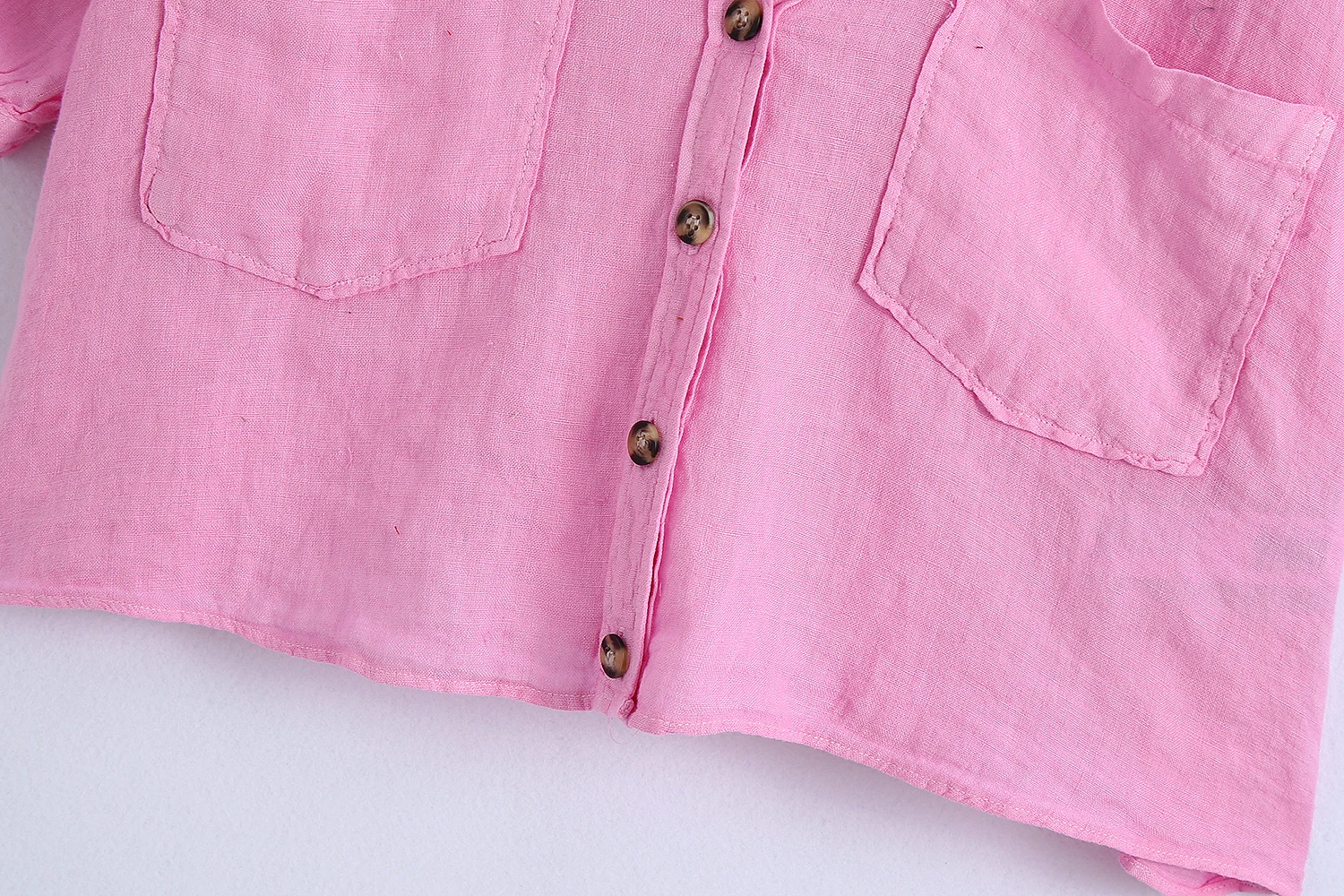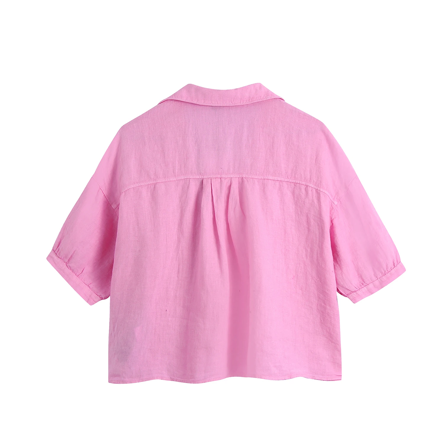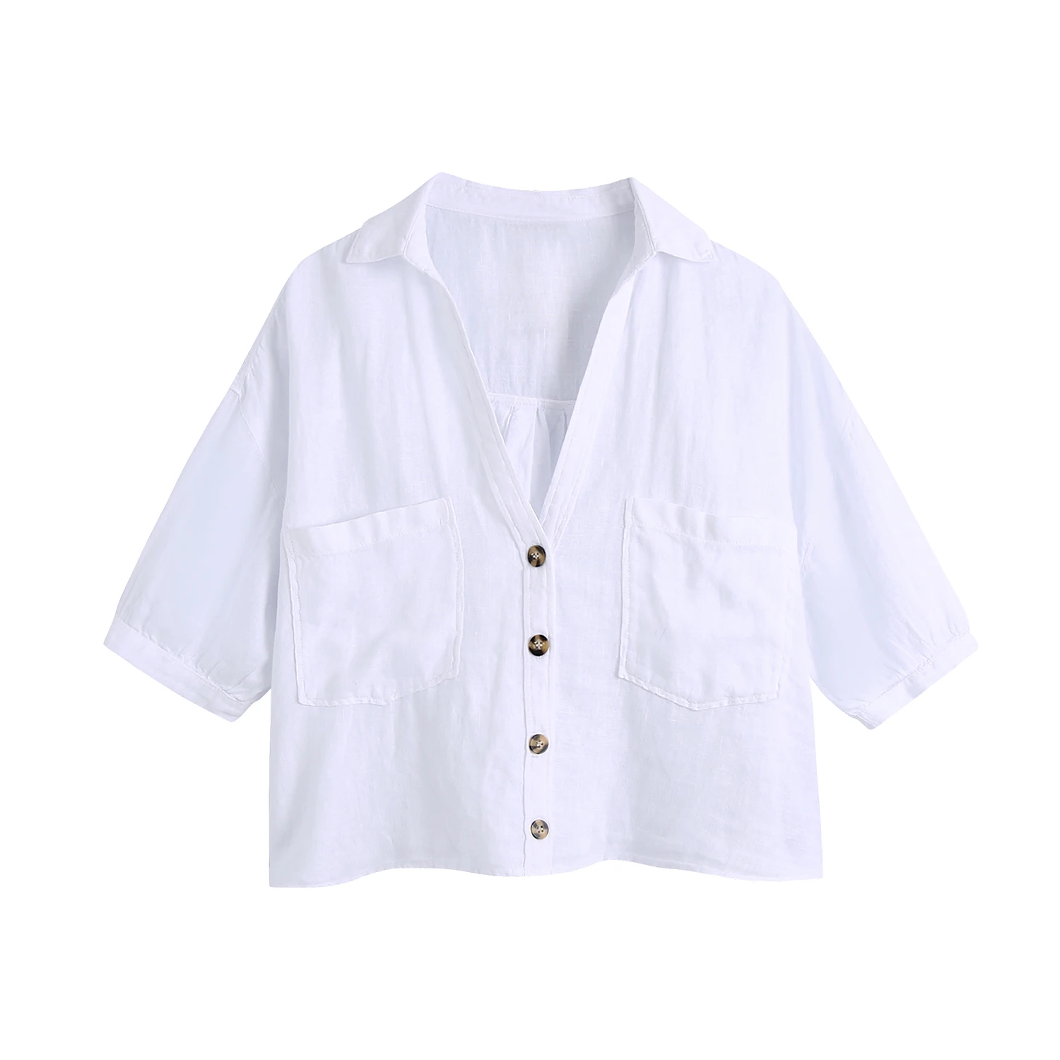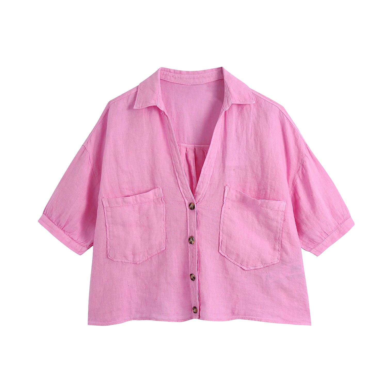 Женская рубашка с коротким рукавом KONDALA Za, однотонная зеленая Повседневная Блузка с V-образным вырезом и карманами, лето 2021