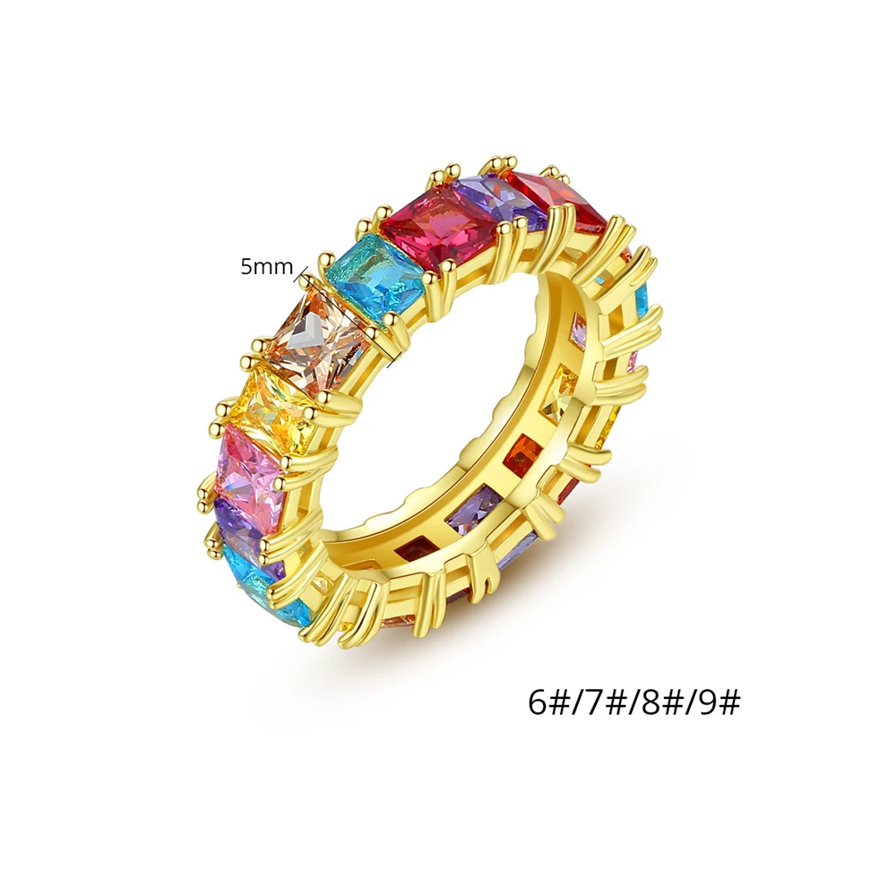 Кольцо женскоеМужское, квадратное, золотого цвета, с радужным цирконием, ювелирные украшения в стиле хип-хоп
