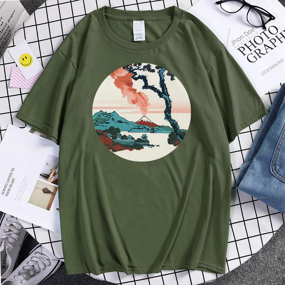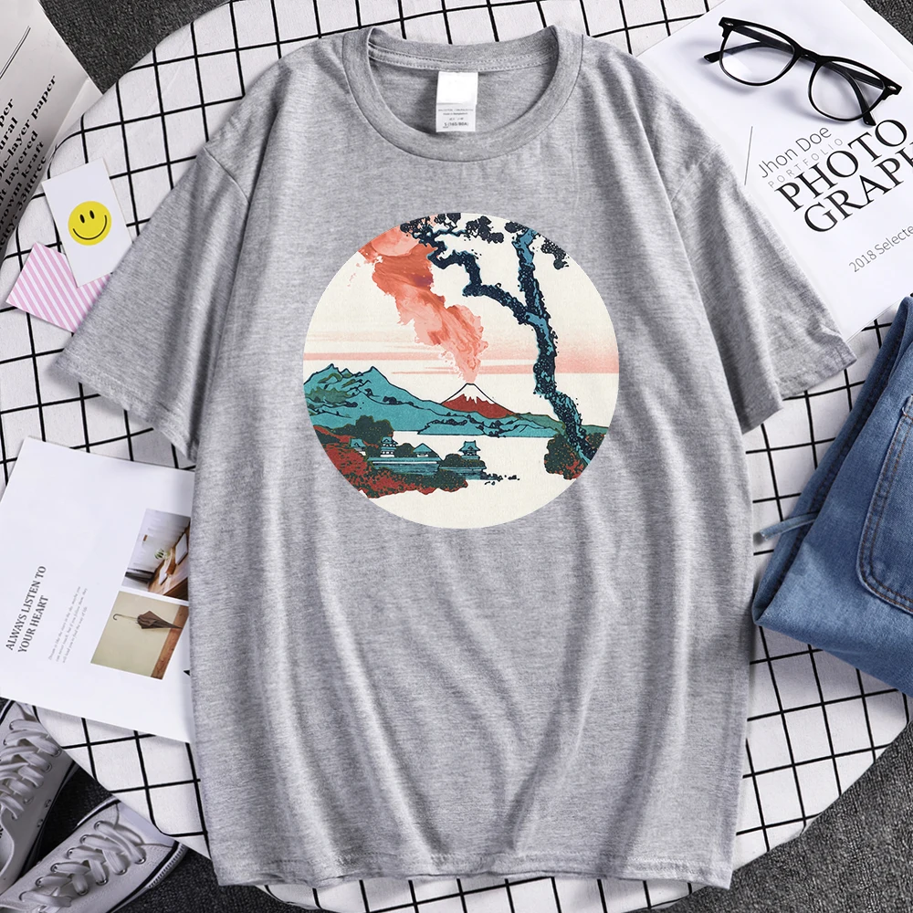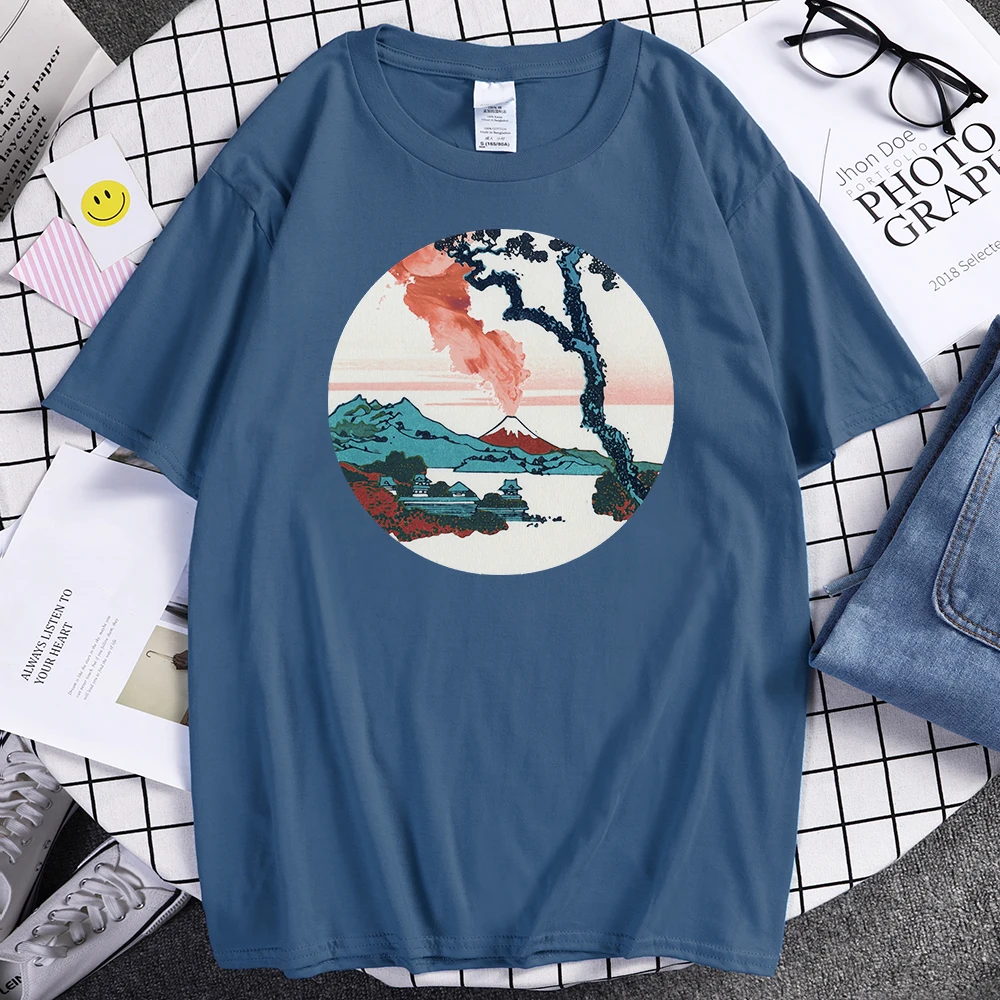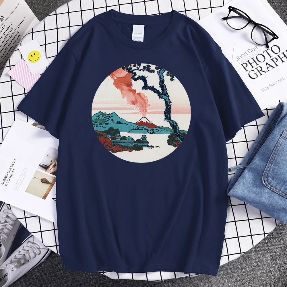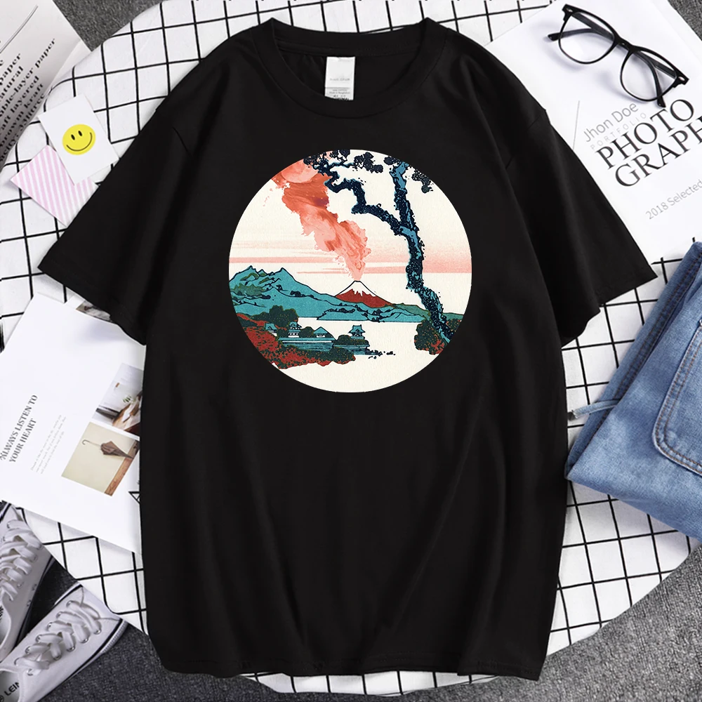 Мужские футболки с принтом Hokusai View Of Mount Fuji, Топ оверсайз с круглым вырезом, Модные дышащие мужские футболки, Летние Удобные футболки
