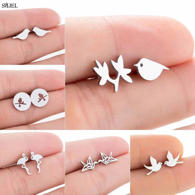 Крошечная нержавеющая сталь серьги в виде птиц для женщин, модное животное, фламинго, оригами, журавль, ласточка, серьги-гвоздики в виде птицы, детский лучший подарок