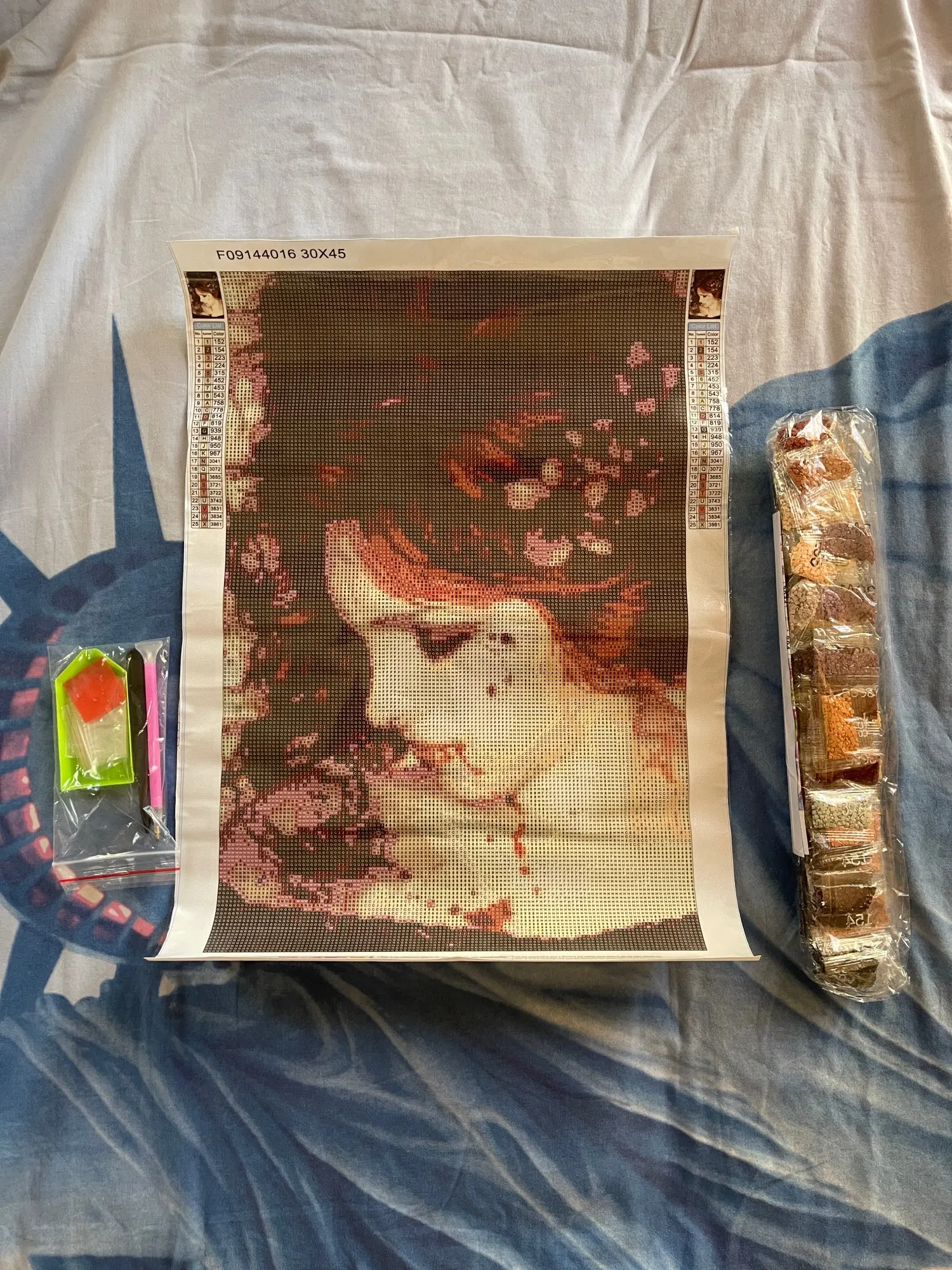 Посылка включает:Полностью сверлильный алмаз, напечатанная ткань, инструменты