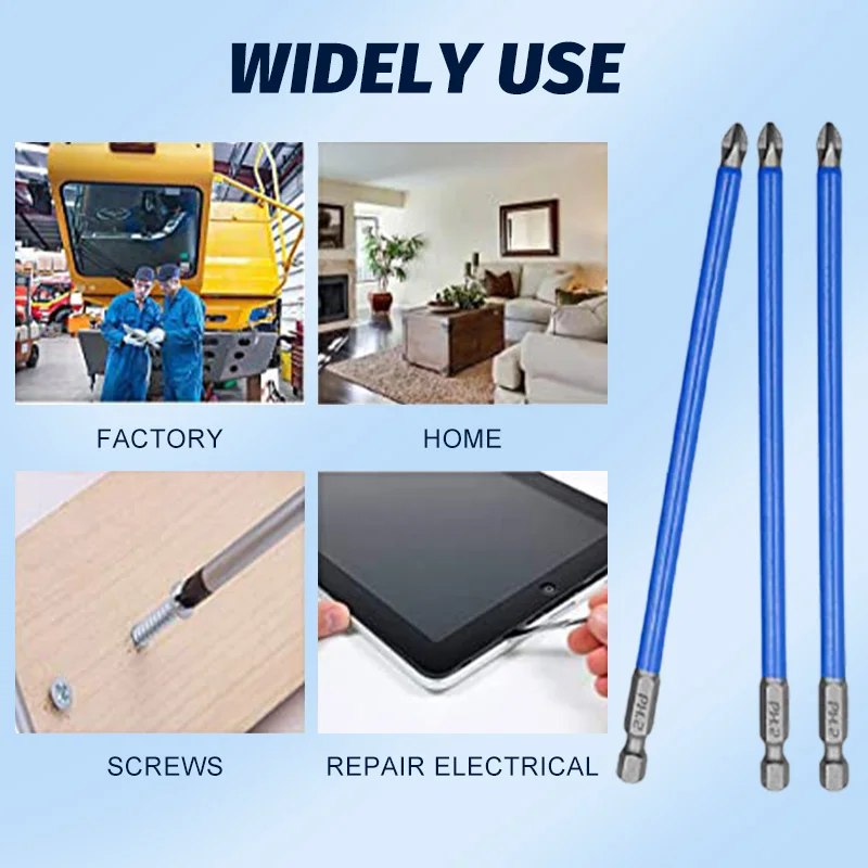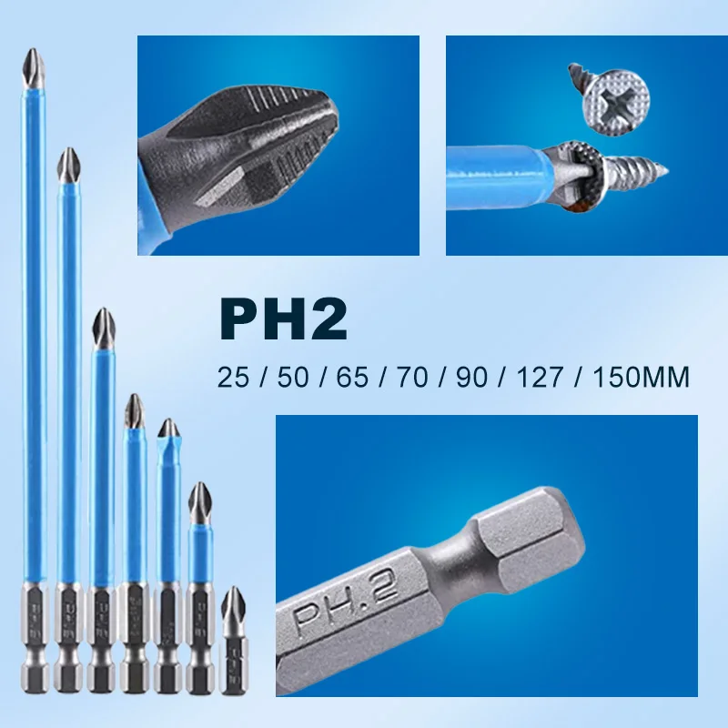 Шестигранная отвертка Philips Bits из легированной стали S2, обладает магнитным и противоскользящим сопротивлением, винты могут быть прочно закреплены на отвертках. Это необходимые биты для деревообработки, машиностроения и обслуживания автомобилей.