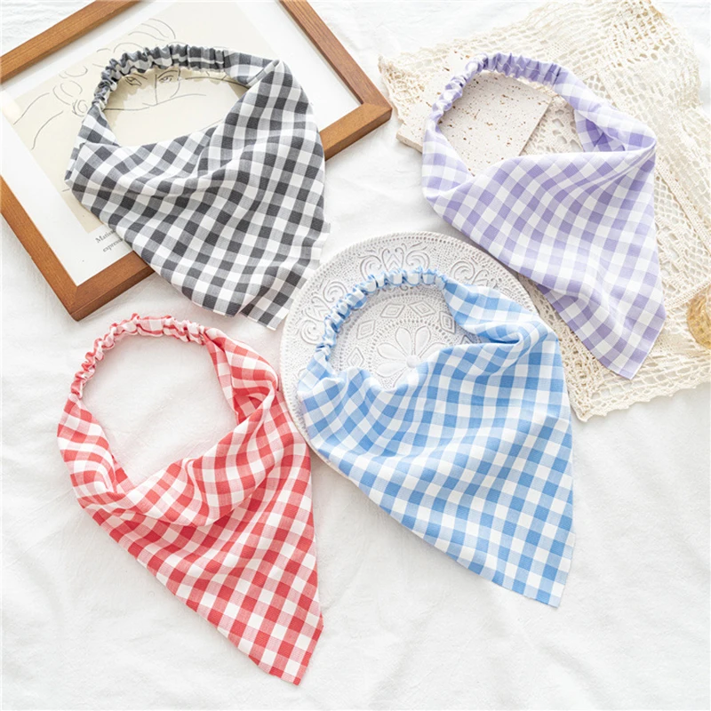 Треугольные банданы, повязка для волос, шарф для волос, Богемные аксессуары для волос для девочек, эластичная резинка для волос с принтом в клетку