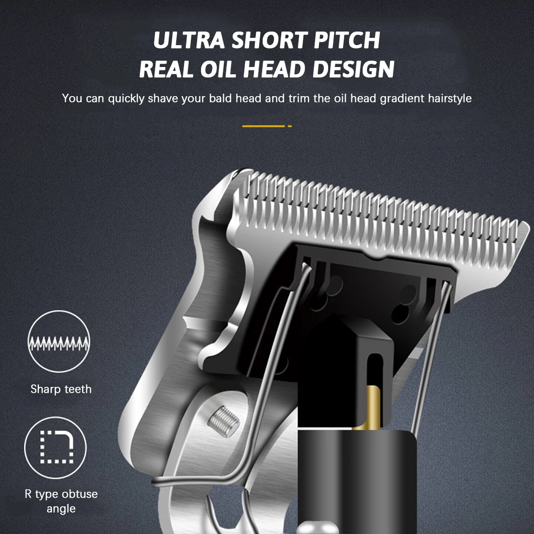 1. Профессиональная машинка для стрижки волос: R-образная круглая головка, мягко прикасайтесь к коже, Избегайте несчастных случаев и не повредите поверхность кожи. С смазочным маслом.